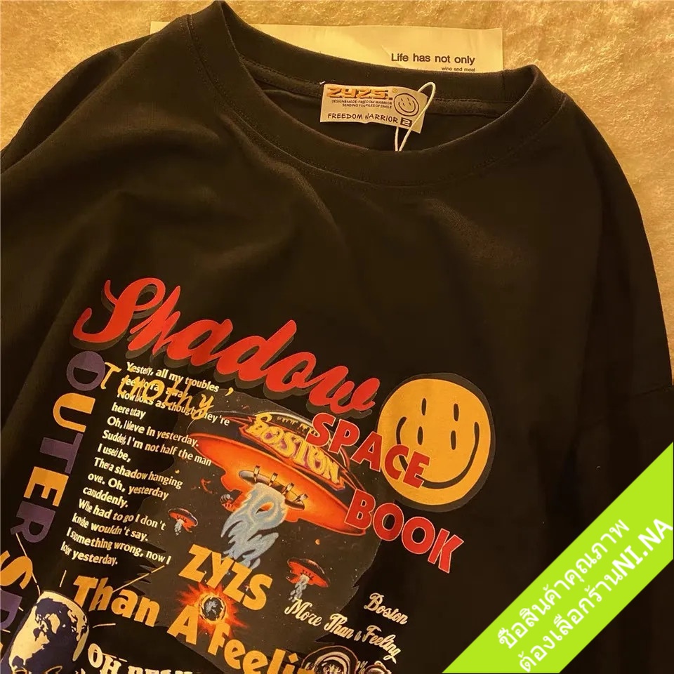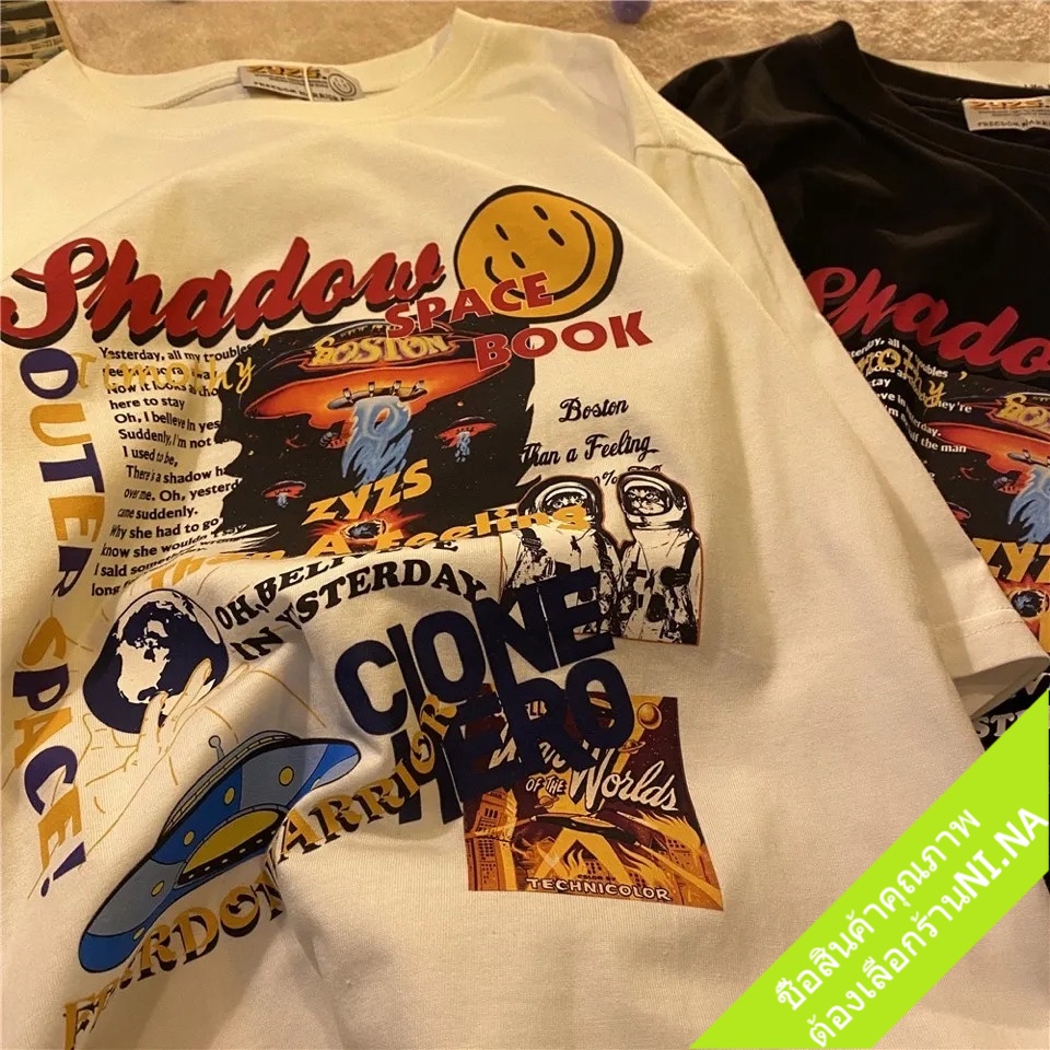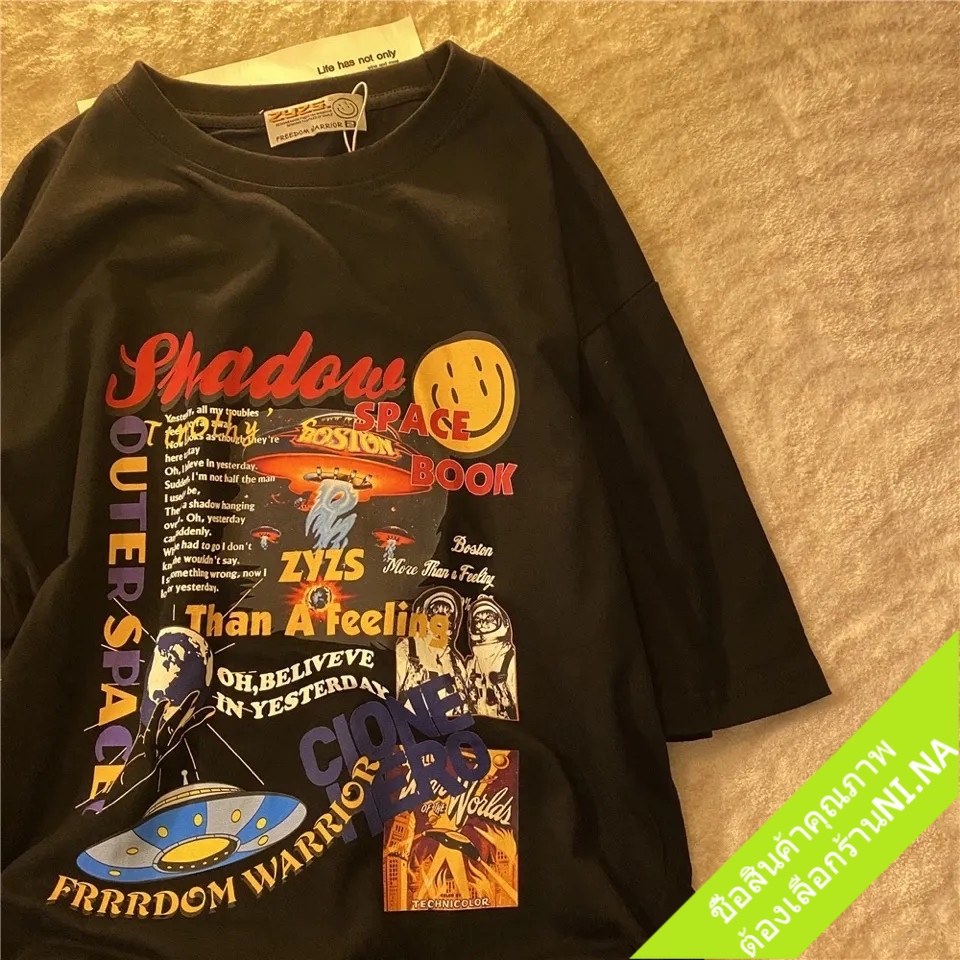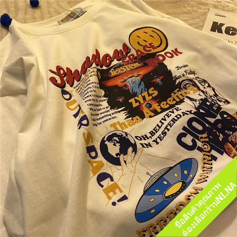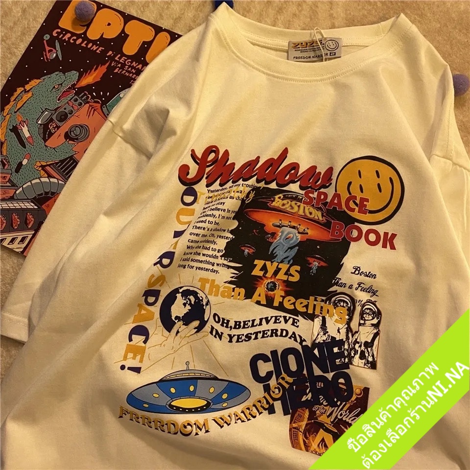 เสื้อคู่ชายหญิงวินเทจ แขนสั้น oversize เสื้อผ้าแฟชั่นสไตล์เกาหลี ทรงหลวม เสื้อยืดโอเวอร์ไซส์ผู้หญิงเท่ สกรีนลายการ์ตูน