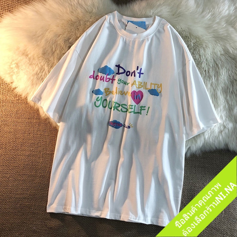 เสื้อยืดวินเทจ สตรีท oversized เสื้อโอเวอร์ไซส์เกาหลีผู้หญิง คอกลม เสื้อคู่รักชายหญิงสีขาว เสื้อผ้าวัยรุ่นแฟชั่น น่ารัก
