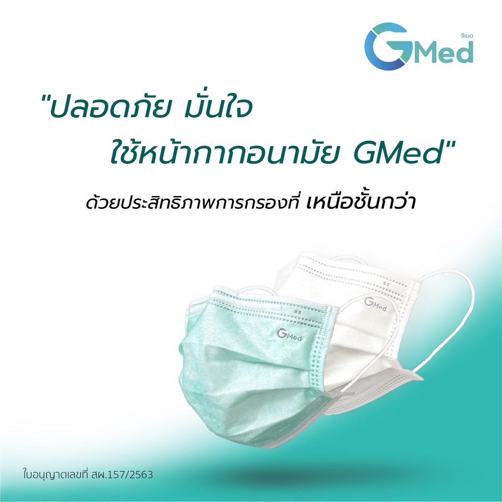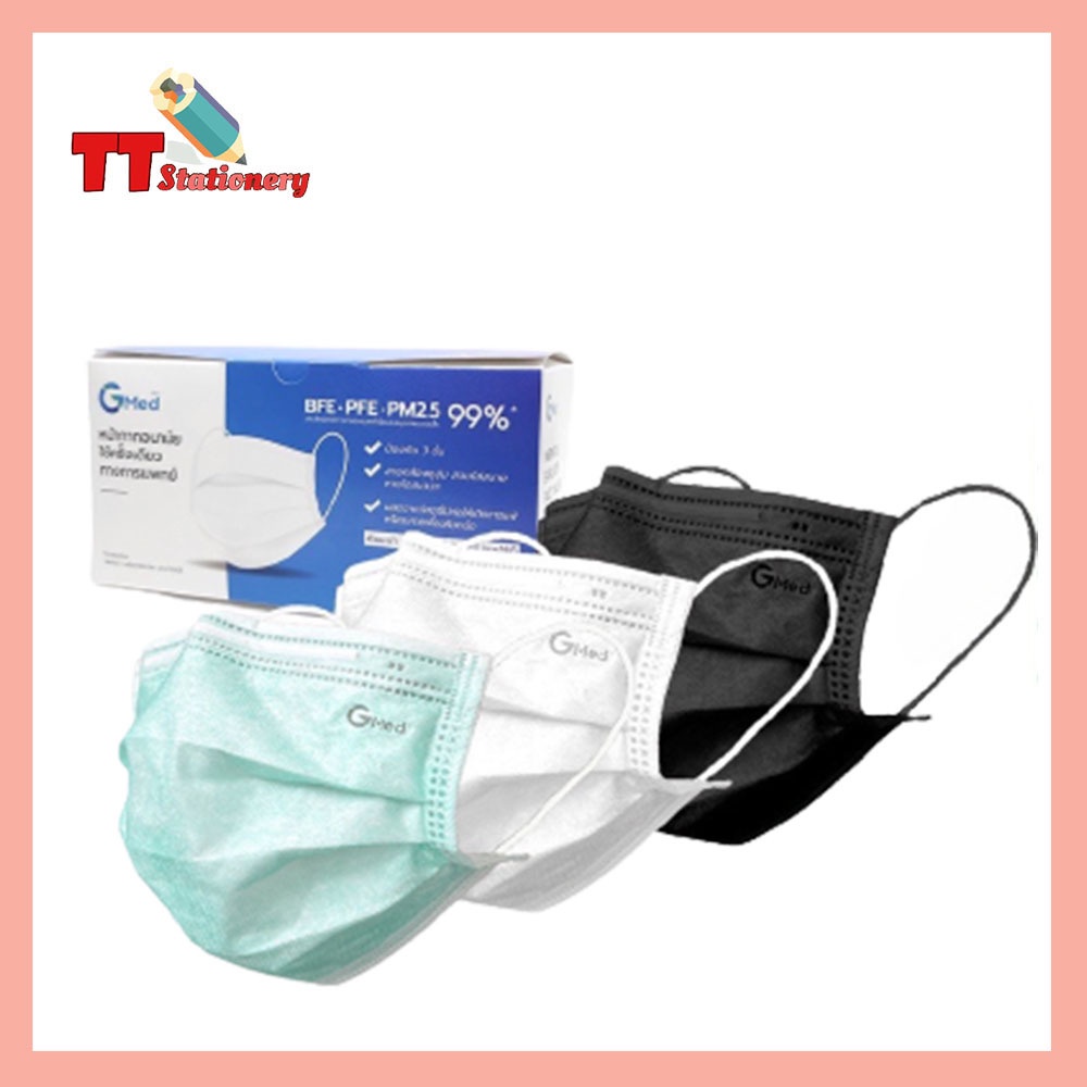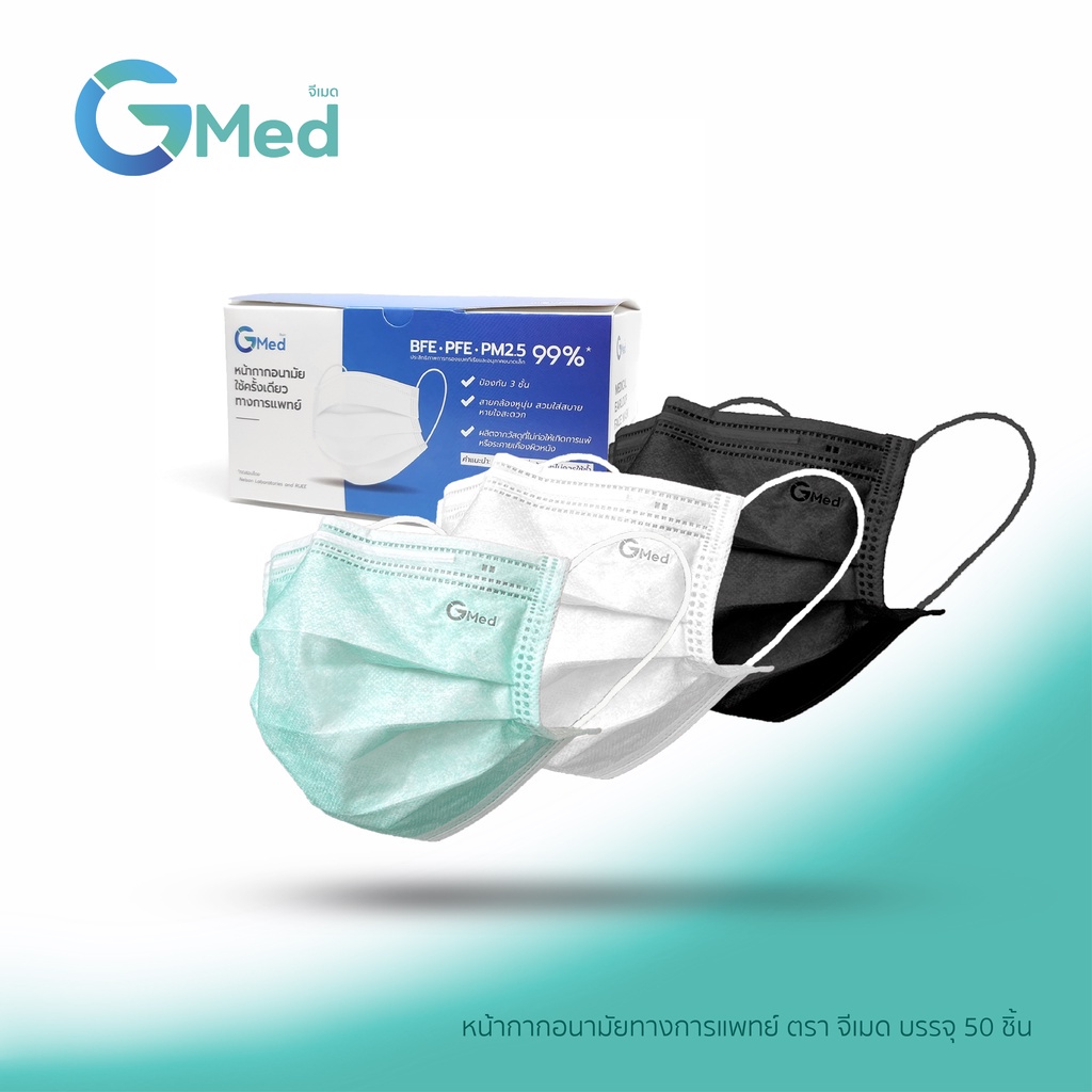 Gmed Mask หน้ากากอนามัย ทางการแพทย์ 3 ชั้น มาตรฐาน ASTM F2100 ( บรรจุ 50 ชิ้น )