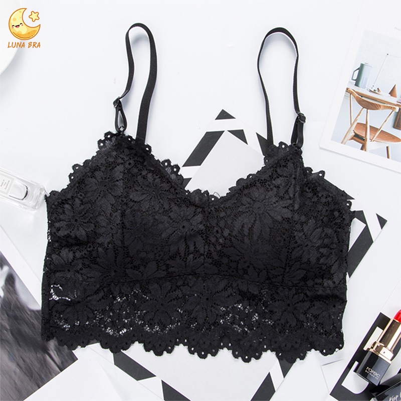 LunaBra บราลูกไม้ ชุดชั้นใน ผ้านิ่มมาก 32-38มีฟองน้ำ ใส่สบาย เซ็กซี่ ไร้โครง ปรับสายได้ BRA-007
