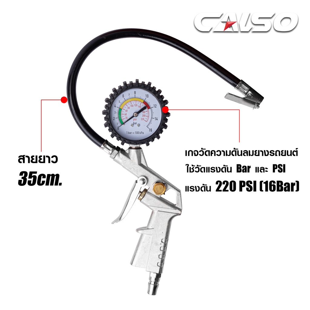 CALSO Inflator หัวเติมลมพร้อมเกจ์วัดลม หัวเติมลมทางเดียว หัวเติมลม 2 ทาง หัวเติมลมยาว หัวเติมลมรถยนต์ ทนทาน แข็งแรง