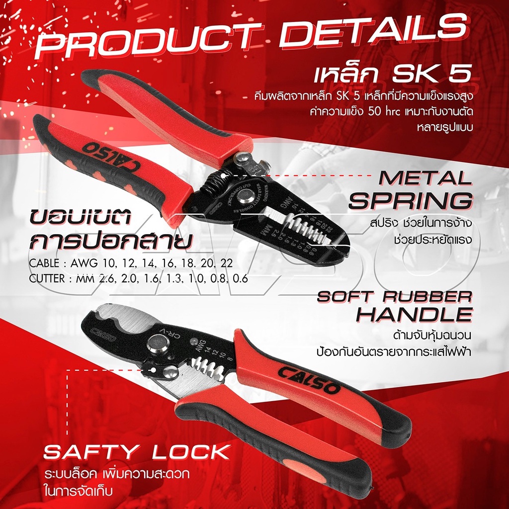 CALSO Cut wires คีมปอกสายไฟ และ คีมตัดสายไฟ อเนกประสงค์ วัสดุที่มีความแข็งแรงสูง ใช้งานได้อย่างง่ายดาย และตัดได้อย่าง
