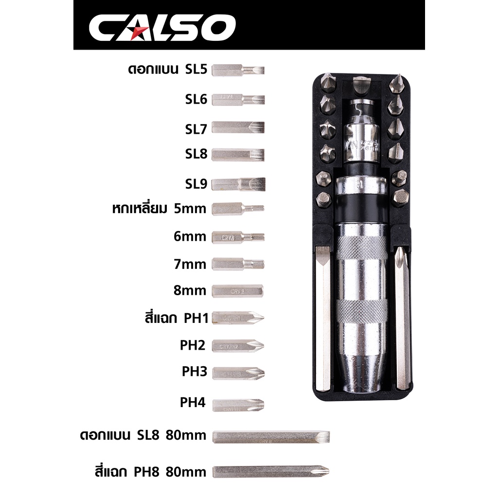 CALSO ไขควงตอกกระแทก พร้อมดอกไขควง 15 ดอก เกรดเหล็ก CRV แท้ ใช้ขันน็อต-คลายน็อต สกูร ที่ขันแน่น บรรจุในกล่องเหล็กอย่างดี