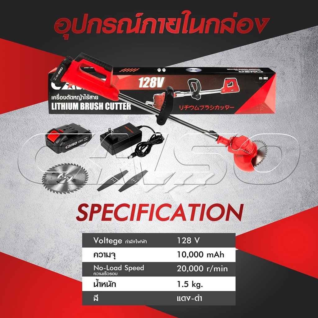CALSO เครืองตัดหญ้าแบตเตอรี่ 128V เครื่องตัดหญ้าไร้สาย เล็มหญ้า เครื่องเล็มหญ้า น้ำหนักเบา พกพาได้สดวก ผู้หญิงก็ตัดได้
