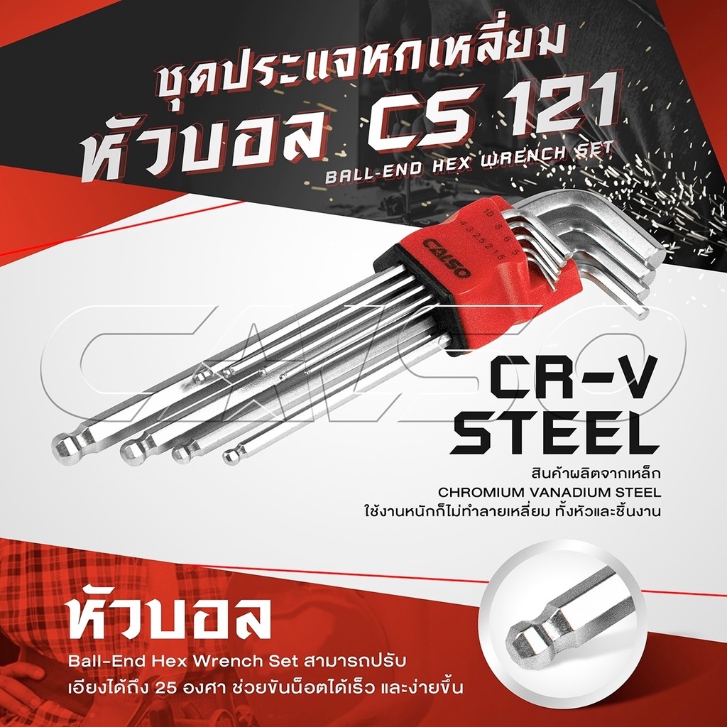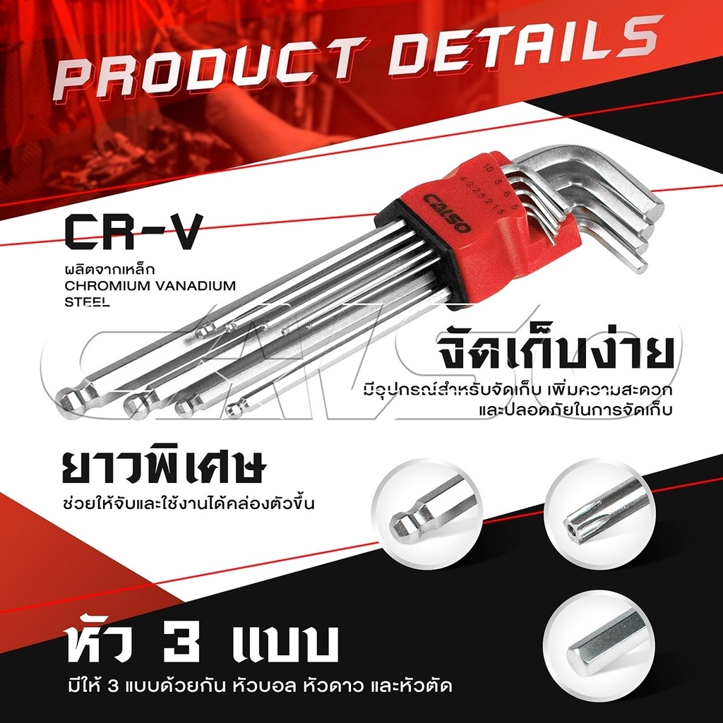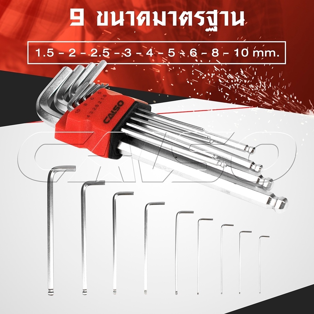 CALSO Hexagon ชุดประแจ แอล หกเหลี่ยม ชุดกุญแจ หกเหลี่ยม ยาวพิเศษ 9 ชิ้น มี 3 แบบให้เลือก หัวตัด หัวบอล และ หัวดาว