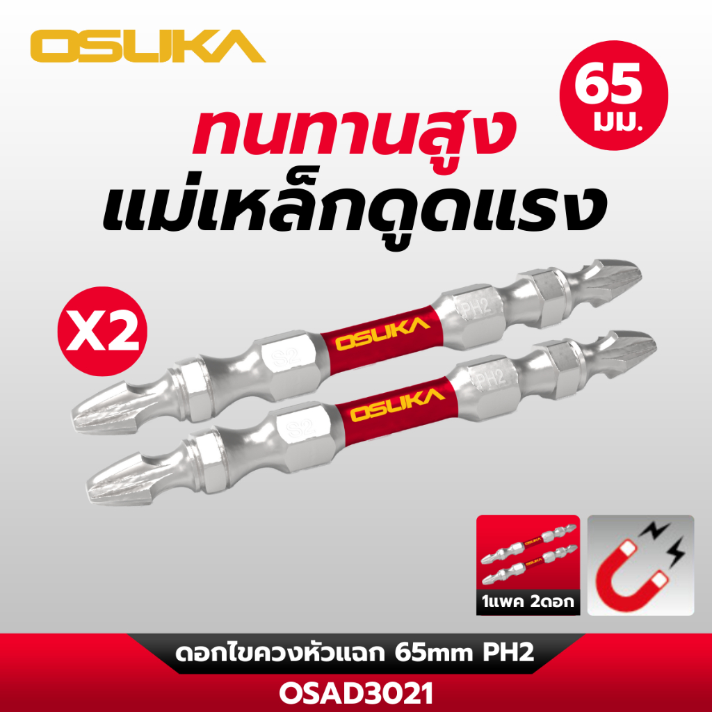 OSUKA หัวไขควงลม ดอกไขควง 2 หัว [ 1 แพ็ค 2 ชิ้น ] รุ่น OSAD3021 พลังแม่เหล็กดึงดูดสูง ชุบกันสนิม Nickle Plated