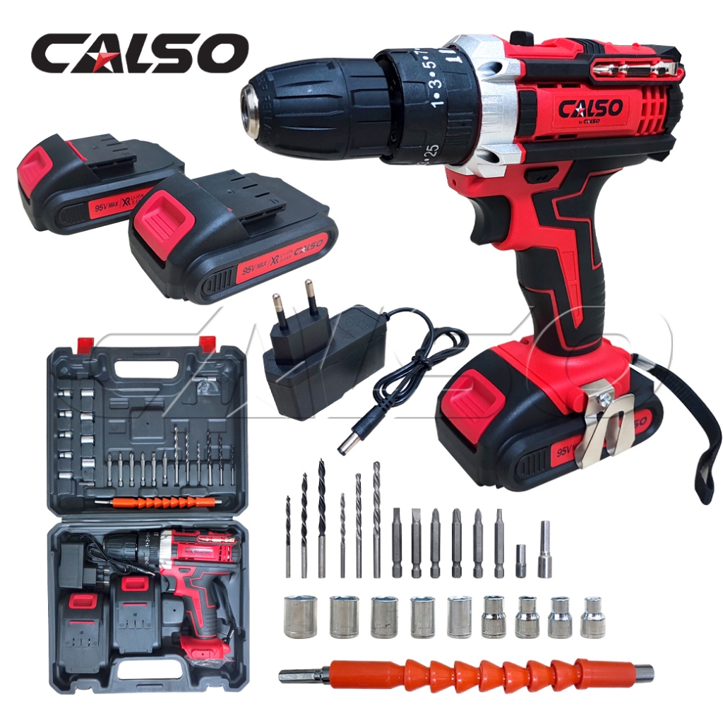 CALSO สว่านไร้สาย สว่านแบต 95 V 3 ระบบ โมเดลใหม่ทันสมัย เหน็บกระเป๋าได้ มีระบบกระแทก แบตเตอรี่ Li-ion อย่างดี 2 ก้อน