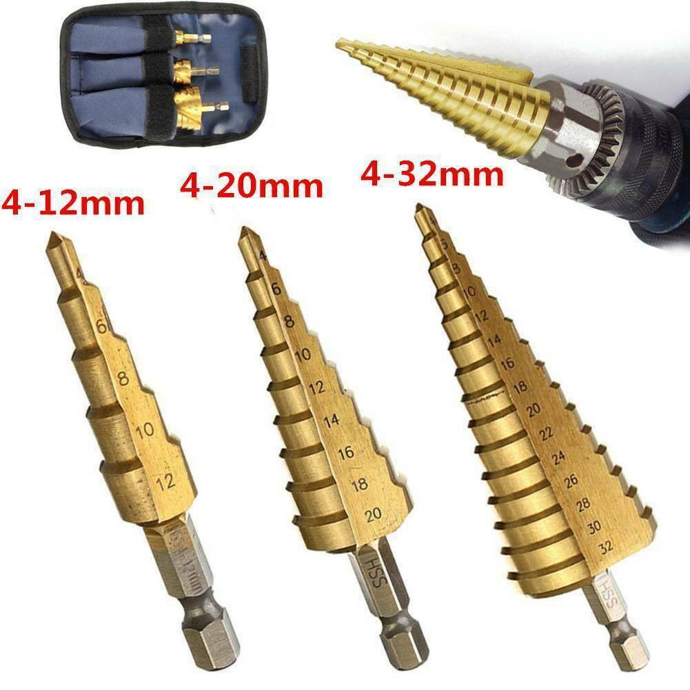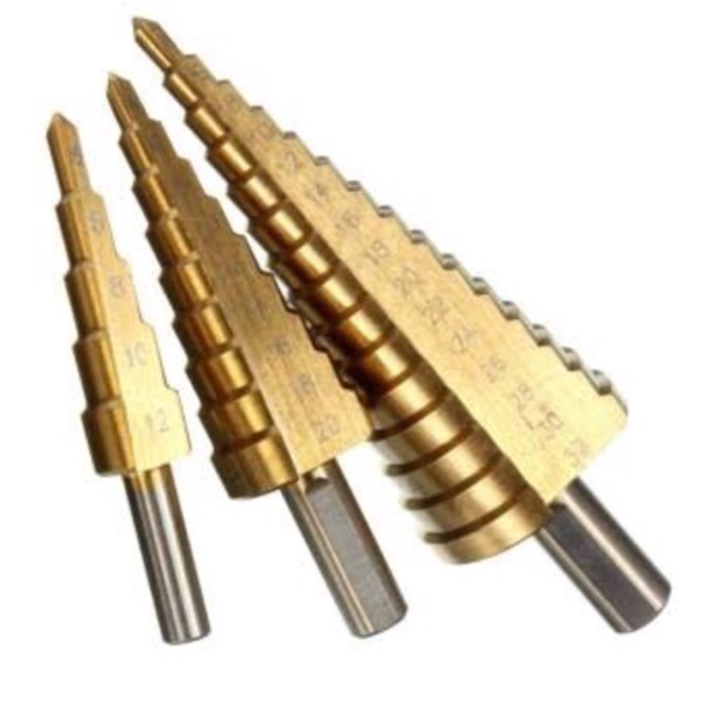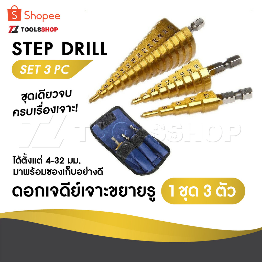 STEP DRILL SET 3 PC ดอกเจดีย์เจาะขยายรู 1 ชุด 3 ตัว ชุดเดียวจบครบเรื่องเจาะ ได้ตั้งแต่ 4-32 มม. มาพร้อมซองเก็บอย่างดี