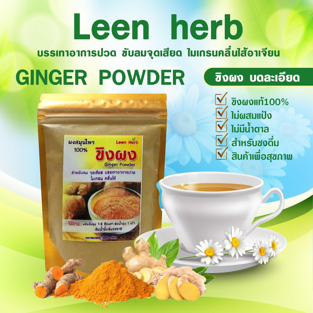 Ginger powder ขิงผง Leen Herb ผงสมุนไพรแท้100% (ซองซิปล็อค 50g)