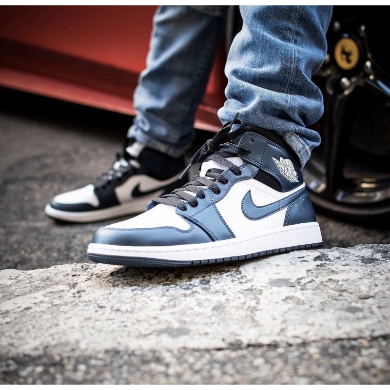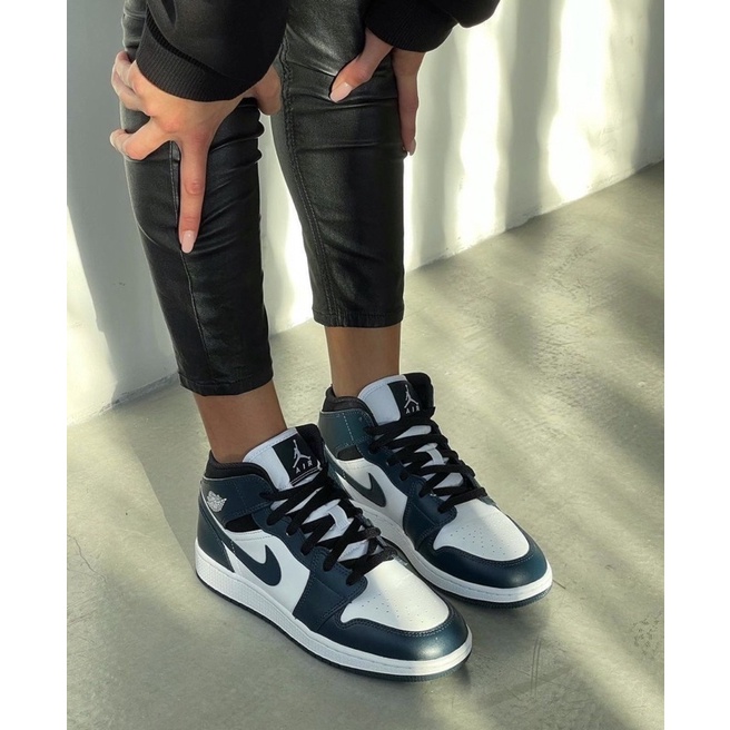 (พร้อมส่ง ของแท้100%)AIR JORDAN 1 MID DARK TEAL ( ARMORY NAVY)