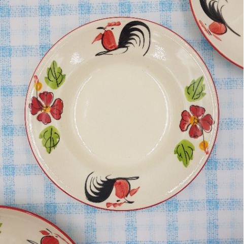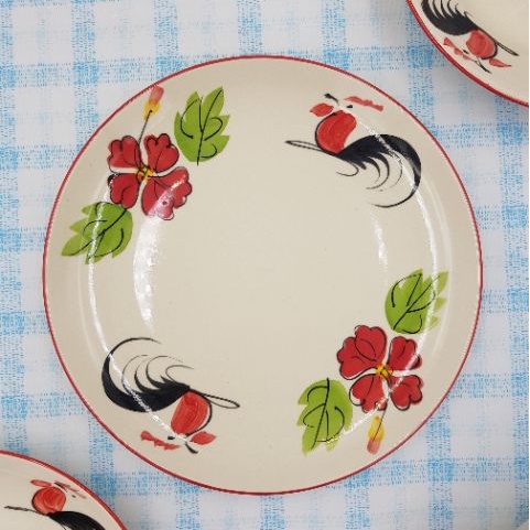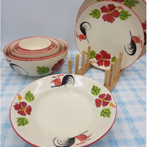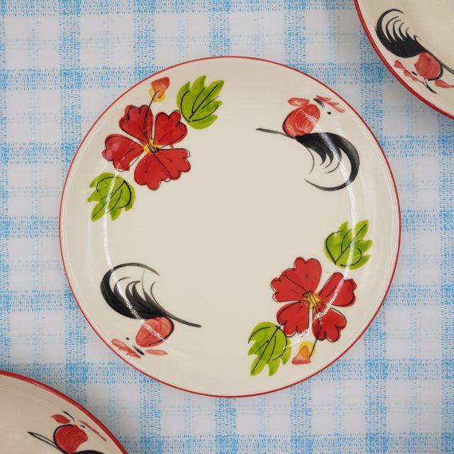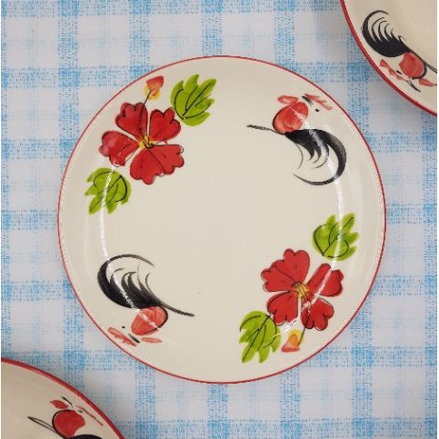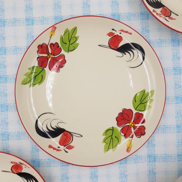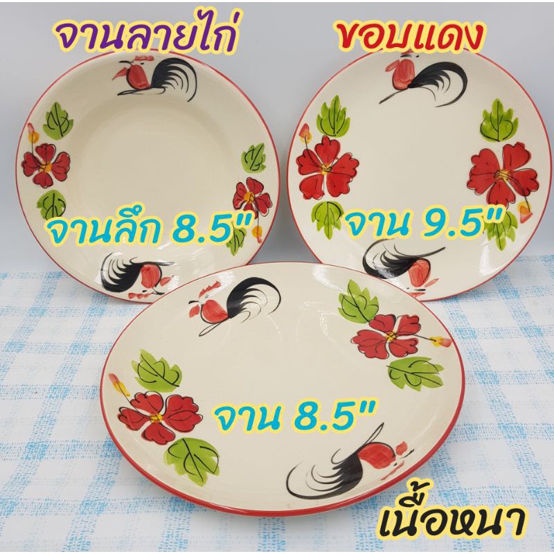 จานเซรามิค ลายไก่ขอบแดง เนื้อหนา มี 3 แบบ