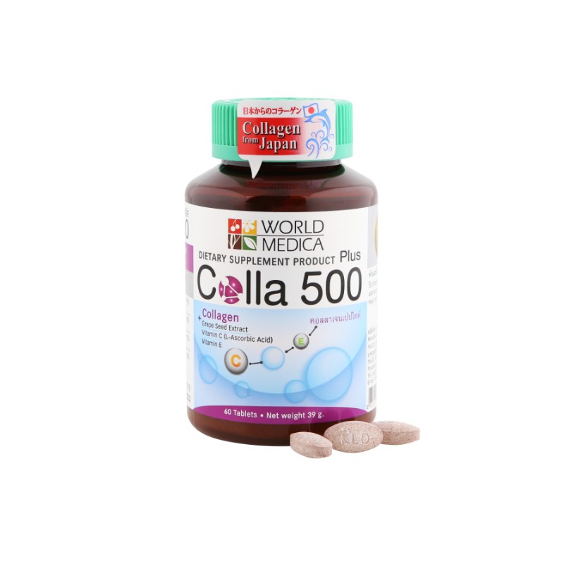 Khaolaor ขาวละออ คอลลา 500 พลัส คอลลาเจ นผสมสารสกัดเมล็ดองุ่น วิตามินซีและอี 60 เม็ด/ขวด