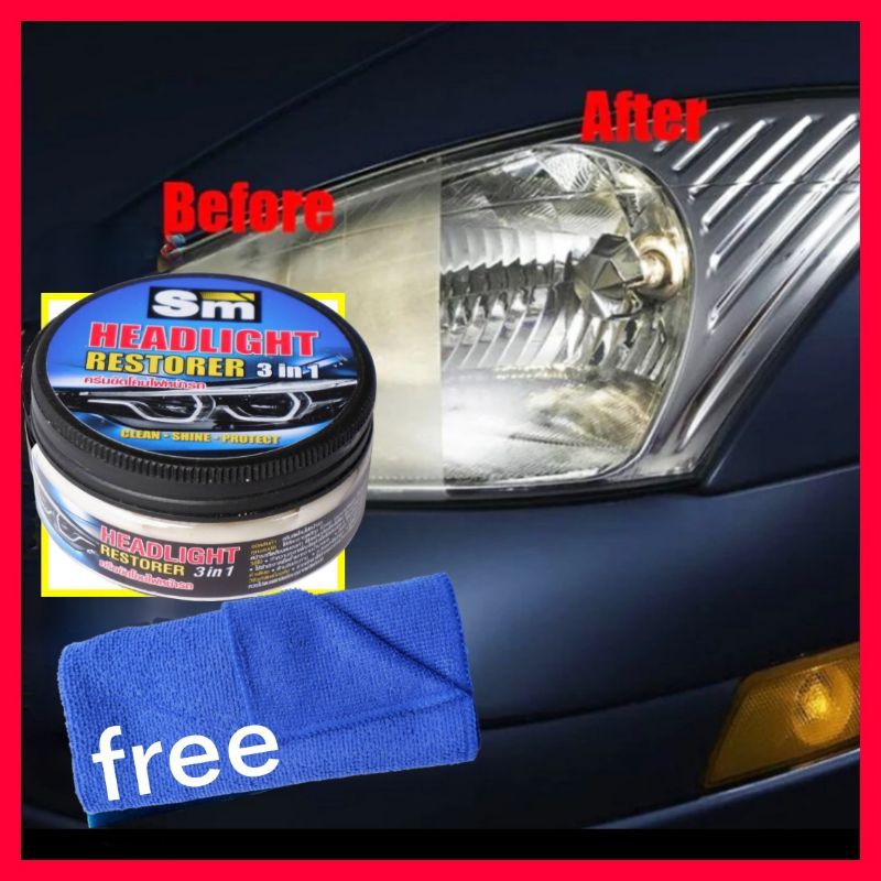 น้ำยาขัดไฟหน้ารถยนต์ SM ครีมขัดไฟหน้ารถยนต์ น้ำยาขัดโคมไฟหน้า ขัดคราบเหลืองพร้อมเคลือบเงา