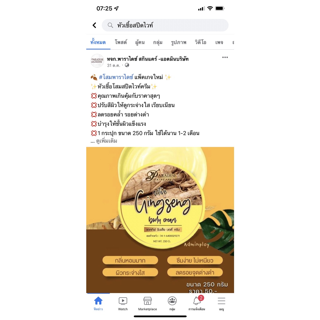 โสมเหลือง ครีมโสมสปีดไวท์ โสม โสมเกาหลี แอคทีฟ จินเส็ง บอดี้ครีม active ginseng body cream