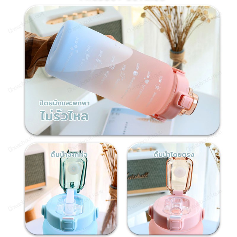 ✅พร้อมส่งครบสี❤️ขวดน้ำ 2 ลิตร (2000ml) ขวดน้ำบอกเวลา ขวดน้ำขนาด 2 ลิตร แก้วเชค ของแท้ แก้วชงโปรตีน พลาสติกหนามาก(222)