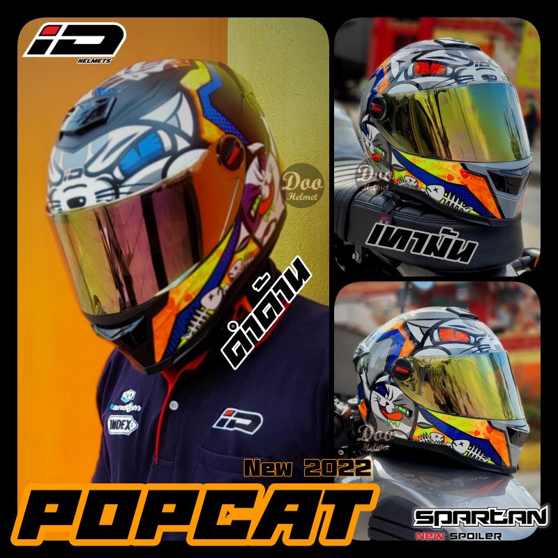 ใหม่ล่าสุด พร้อมส่ง หมวกกันน็อคหุ้มคาง ลาย PopCat ค่าย Index รุ่น Spartan2022 เอาใจทาสแมว ถอดซักได้ มีไซร์ M-XL