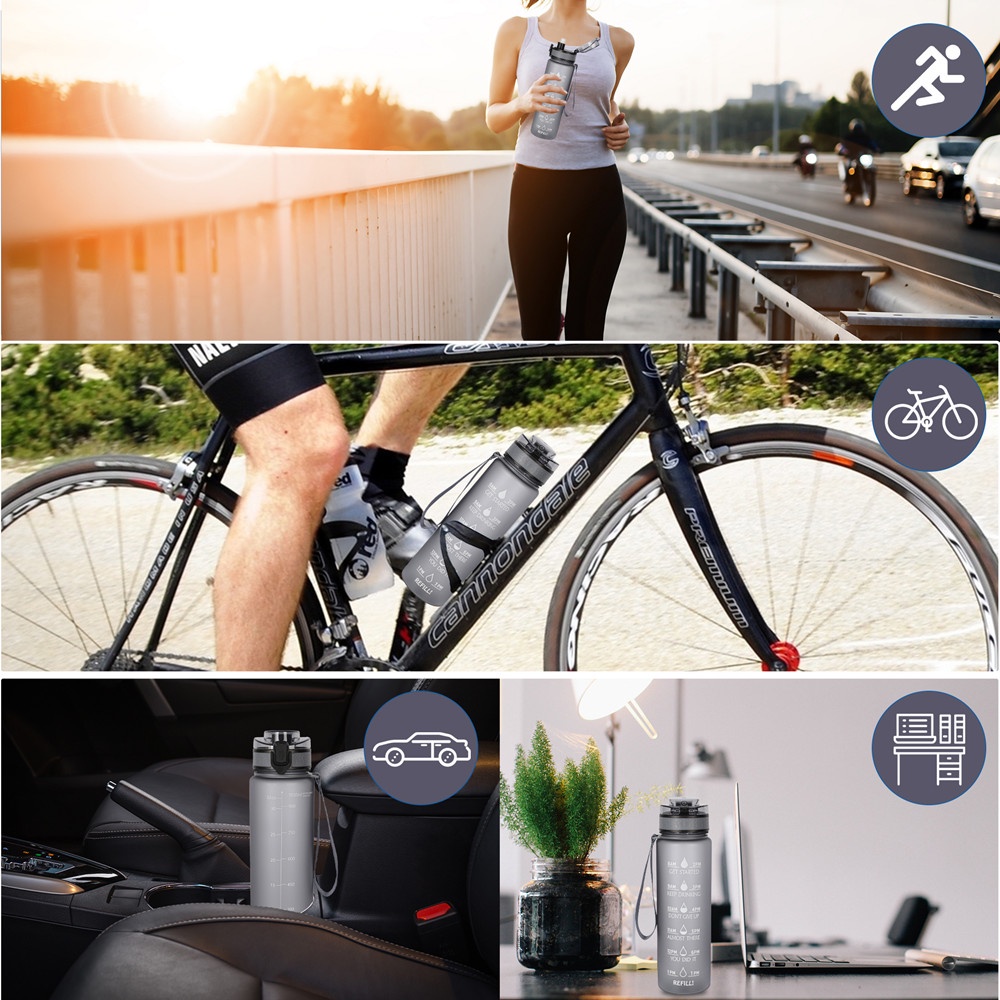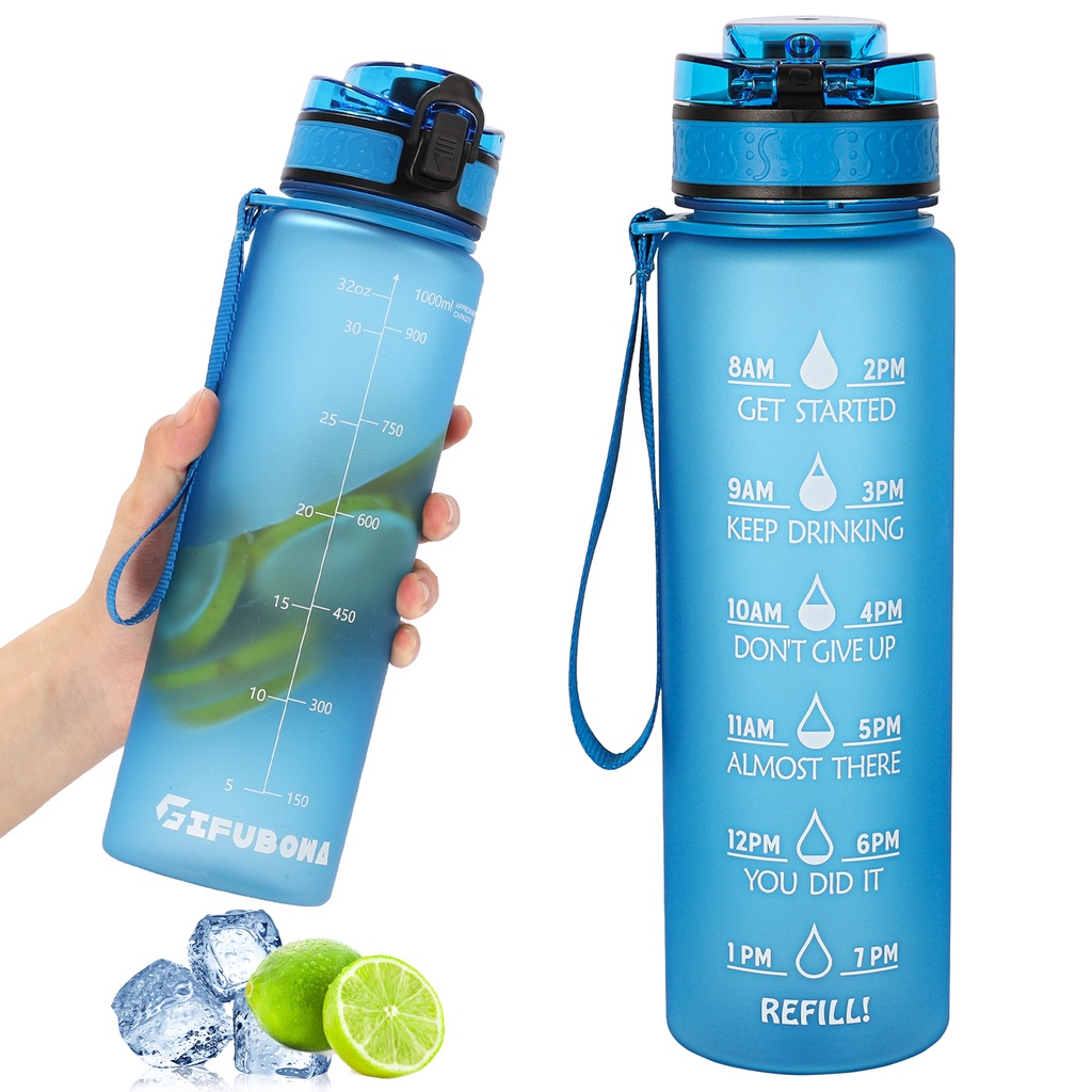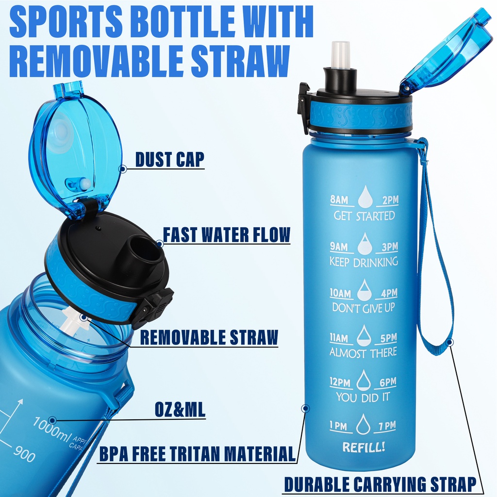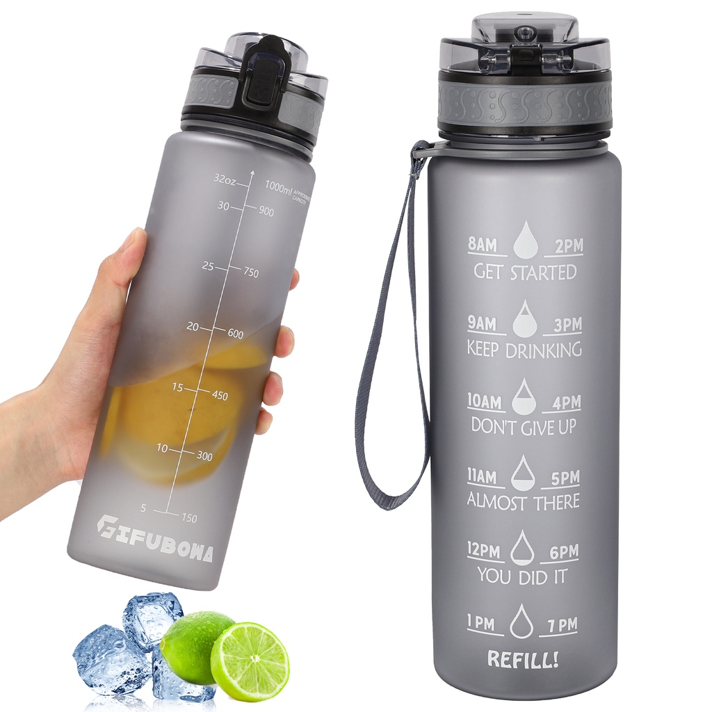 Gemful ขวดน้ำพร้อมหลอด ความจุ 1 ลิตร ปลอดสาร BPA สำหรับพกพา