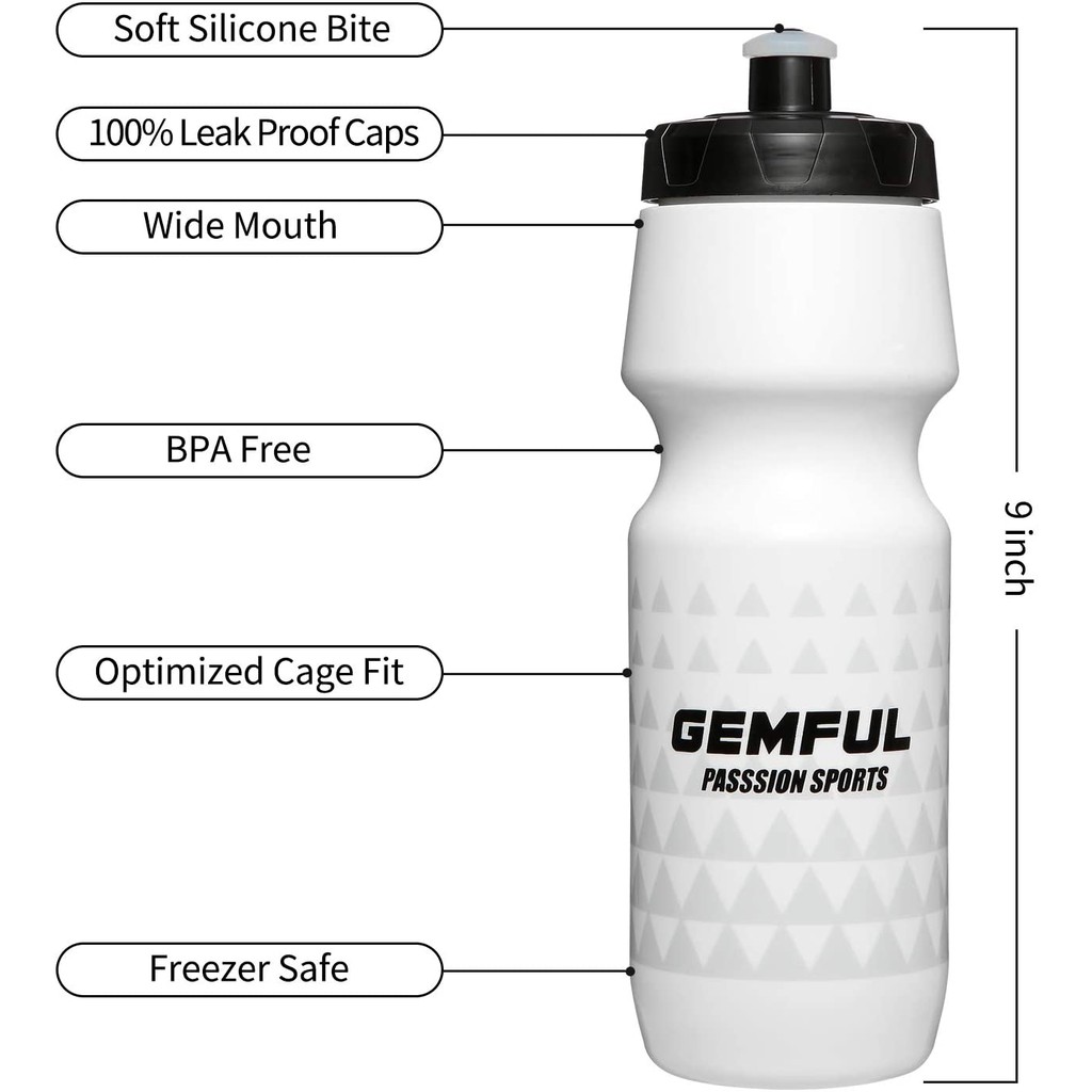 GEMFUL ขวดน้ําปั่นจักรยาน750ML Squeeze BPA Free สําหรับเล่นกีฬากลางแจ้งหรือออกกําลังกาย 24oz