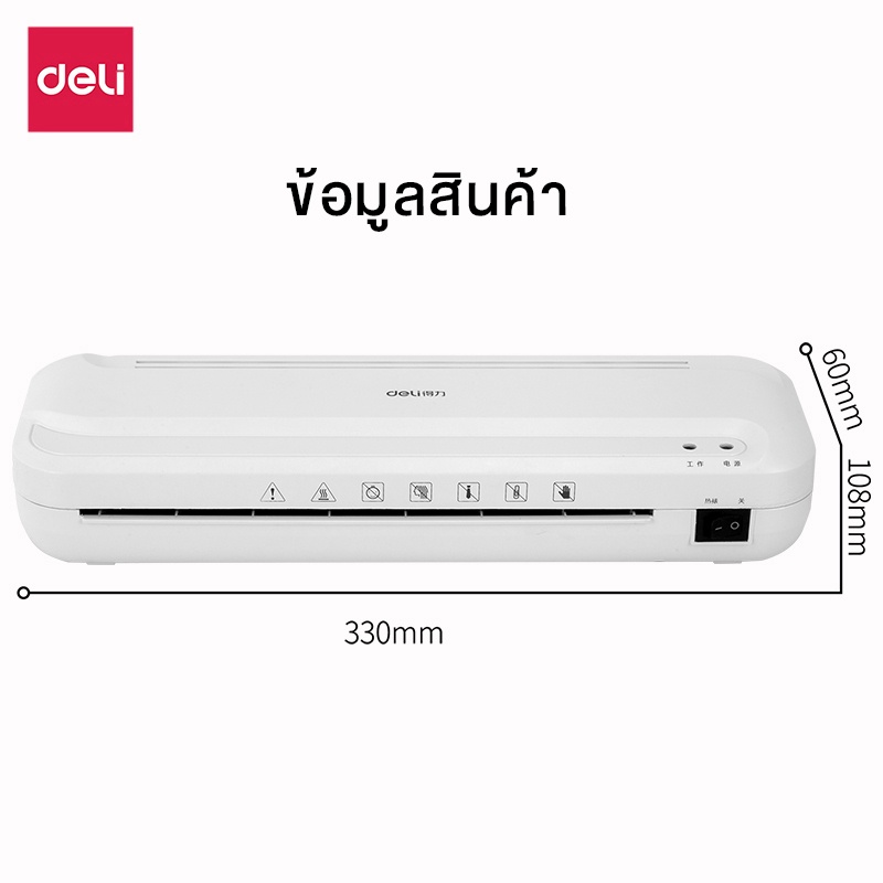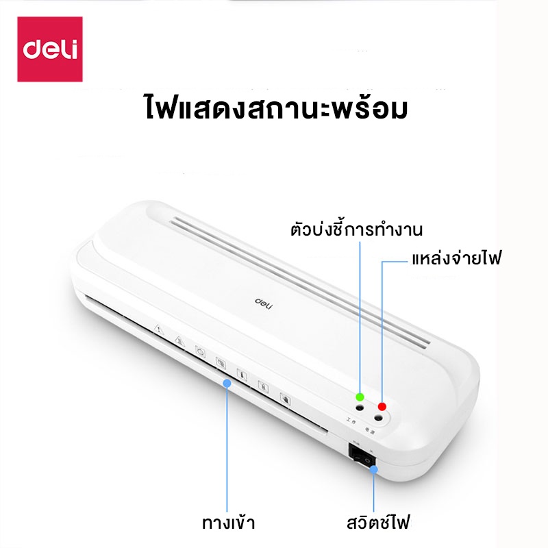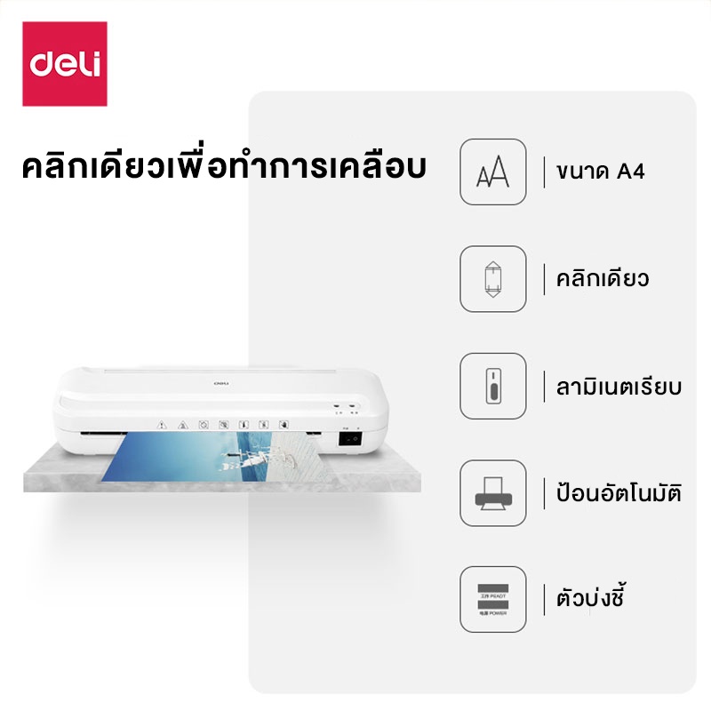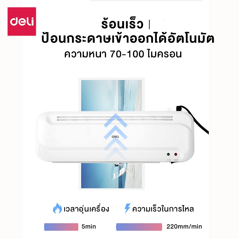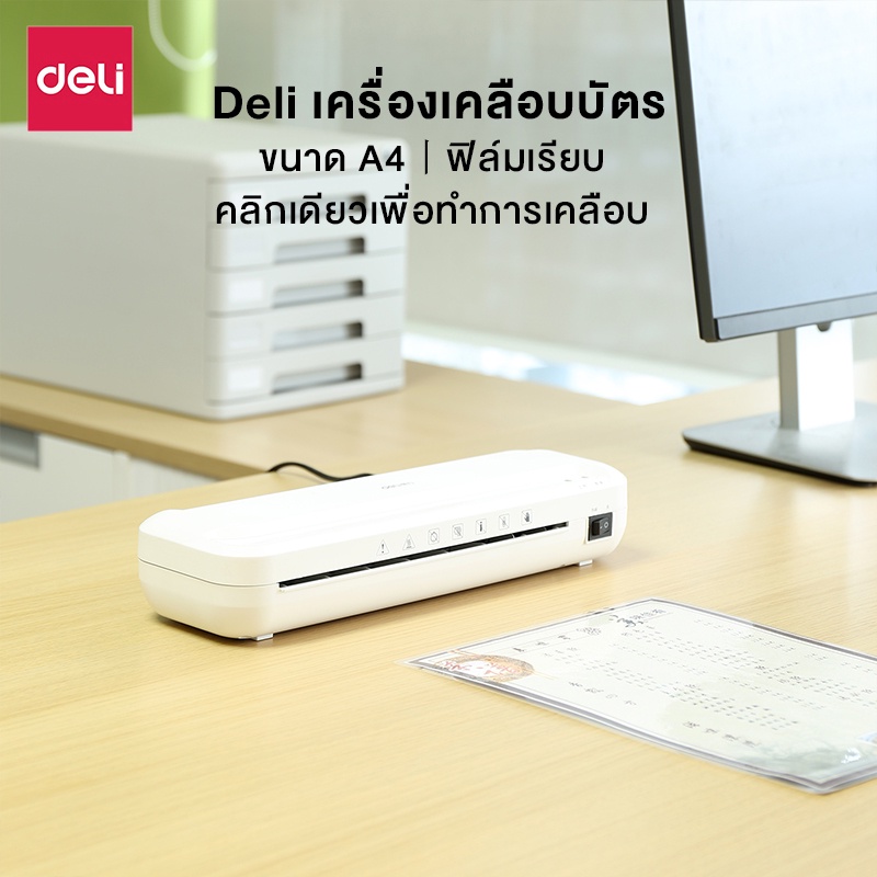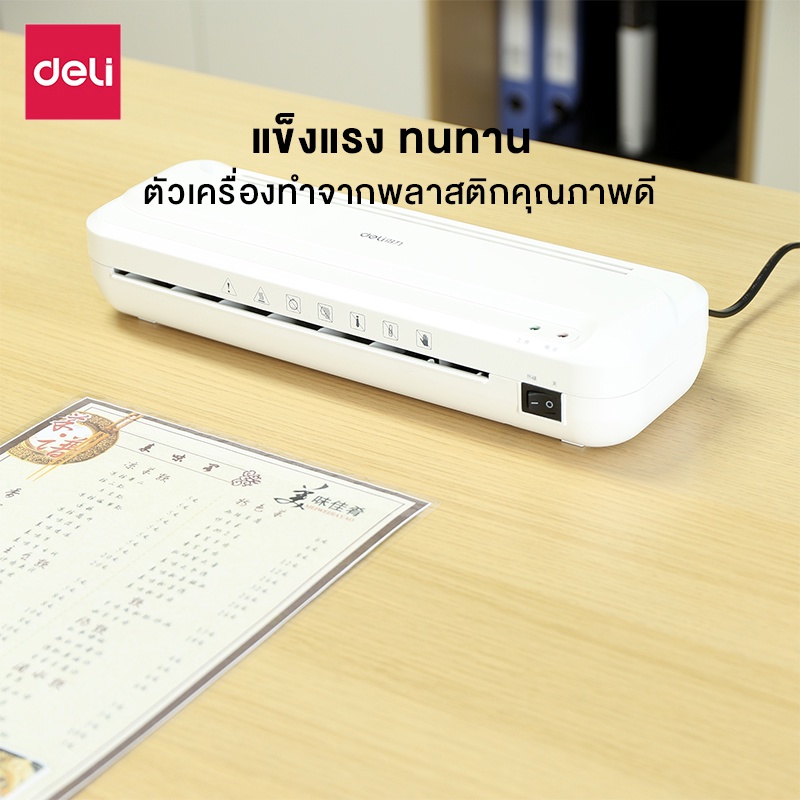 Deli เครื่องเคลือบบัตร A4 เครื่องเคลือบเอกสาร 320 มม./นาที ปรับอุณหภูมิได้ มีระบบปลอดภัย Laminator
