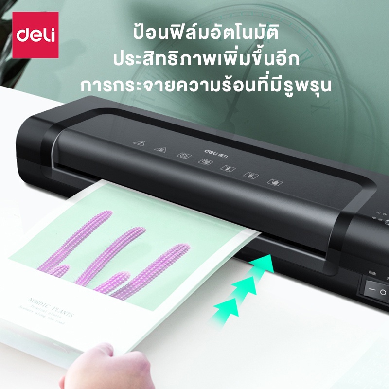 Deli เครื่องเคลือบบัตร A4 เครื่องเคลือบเอกสาร ร้อน เคลือบเร็ว 280มม./นาที Laminator