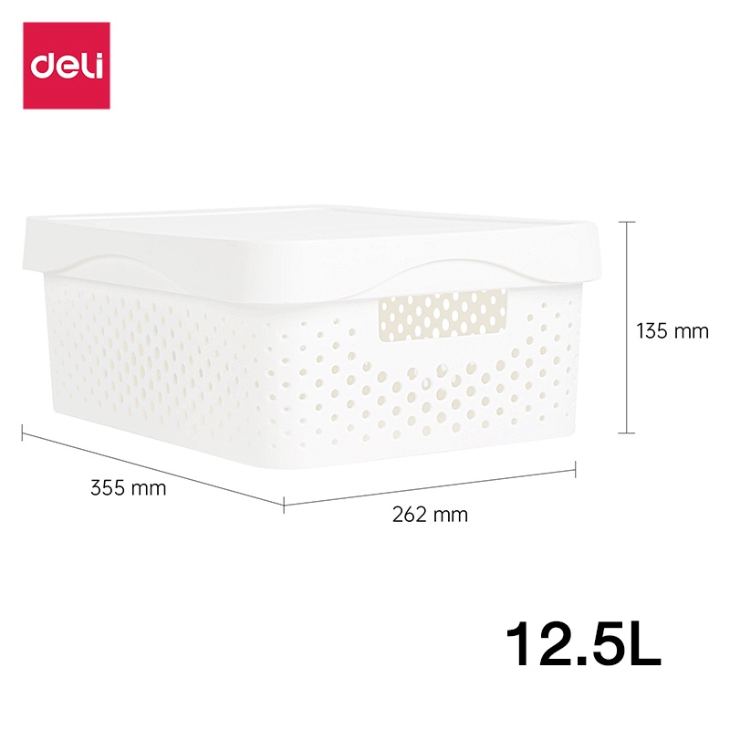 Deli กล่องเก็บของ พร้อมฝา ตะกร้าเก็บของ ถังจัดเก็บ กล่องใส่ของ กล่องออแกไนเซอร์ สีขาว ประหยัดพื้นที่ Storage Box