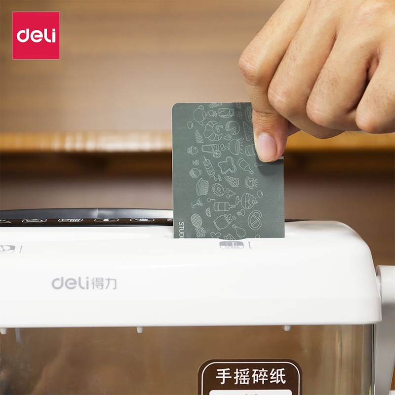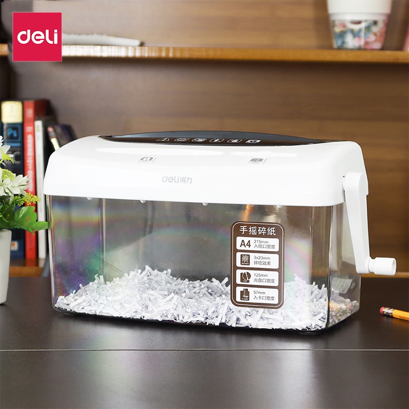 Deli เครื่องย่อยกระดาษ 4 ลิตร เคร ื่องทำลายเอกสาร แบบมือหมุน ขนาด A4 อุปกรณ์สำนักงาน Paper Shredder
