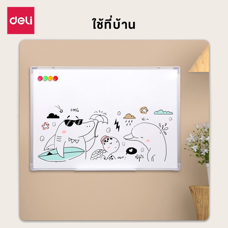 Deli กระดานไวท์บอร์ด ไวท์บอร์ด เขียนลบได ้ เป็นแม่เหล็ก มีตะขอแขวนได้ อุปกรณ์สำนักงาน Whiteboard