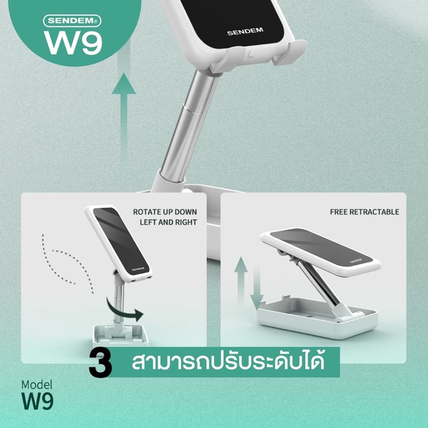 แท่นวางมือถือ SENDEM W9 ใช้วางโทรศัพท์ และ แท็บเล็ต พับเก็บได้ ประกันศูนย์ 1 ปี