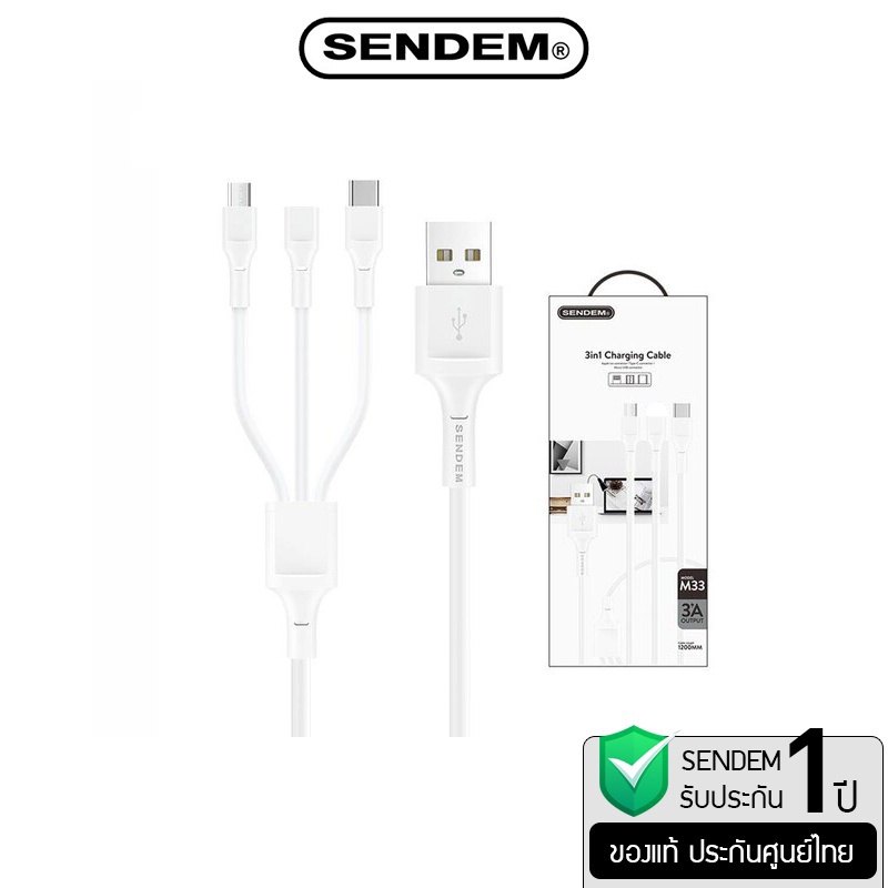 สายชาร์จ 3in1 Sendem M33 ชาร์จเร็ว 3A ประกันศูนย์ 1 ปี