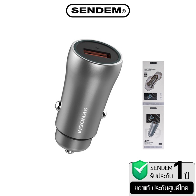 SENDEM D9 หัวชาร์จในรถยนต์ ชาร์จเร็วมาก 45W USB 1 ช่อง ประกันศูนย์ 1 ปี
