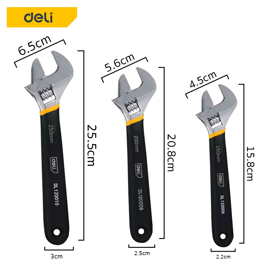 Deli ประแจเลื่อน ประแจอเนกประสง ค์ กุญแจเลื่อน ขนาด 6 8 10 12 นิ้ว แข็งแรง ด้ามจับถนัดมือ Adjustable Wrench