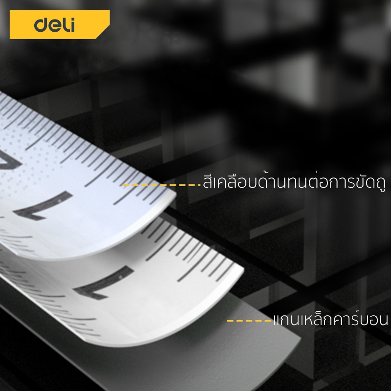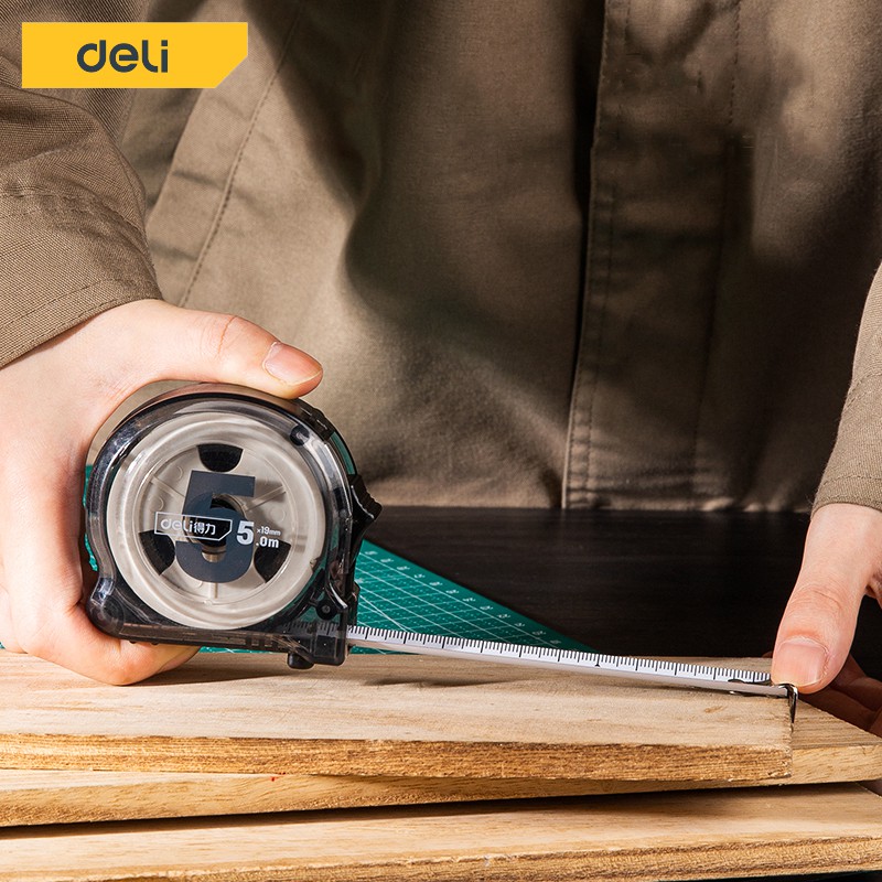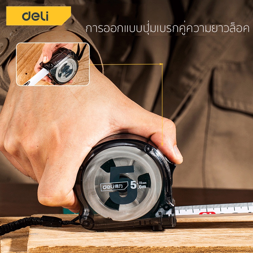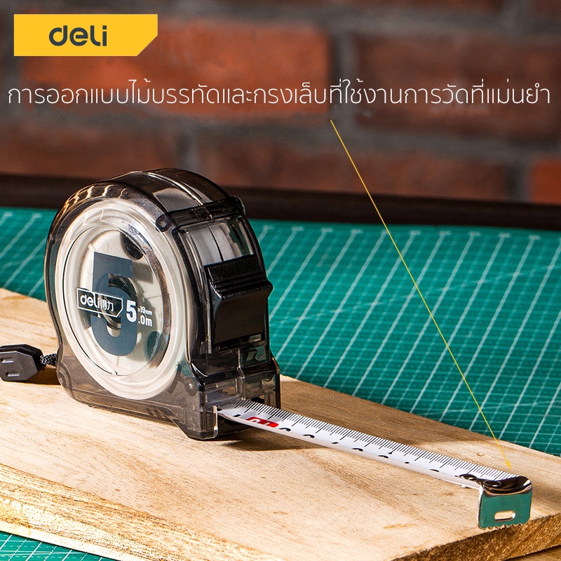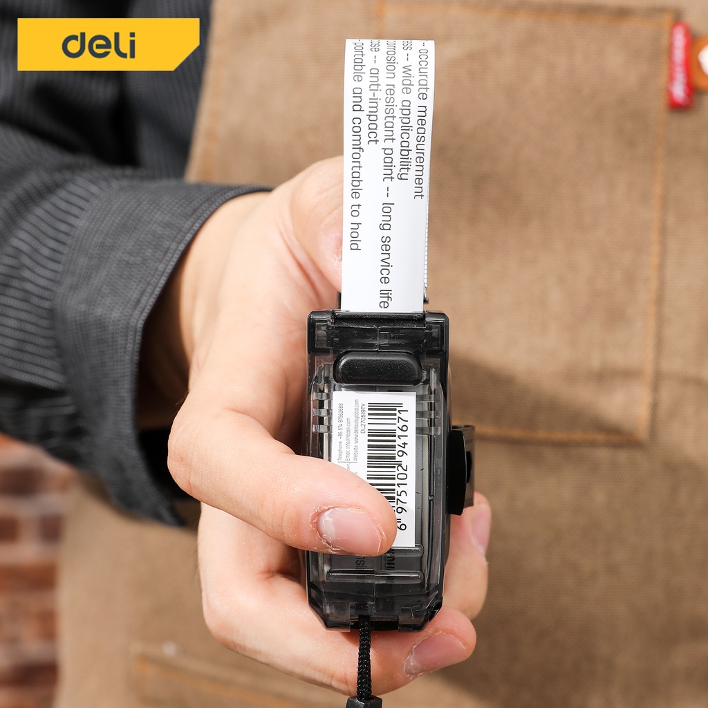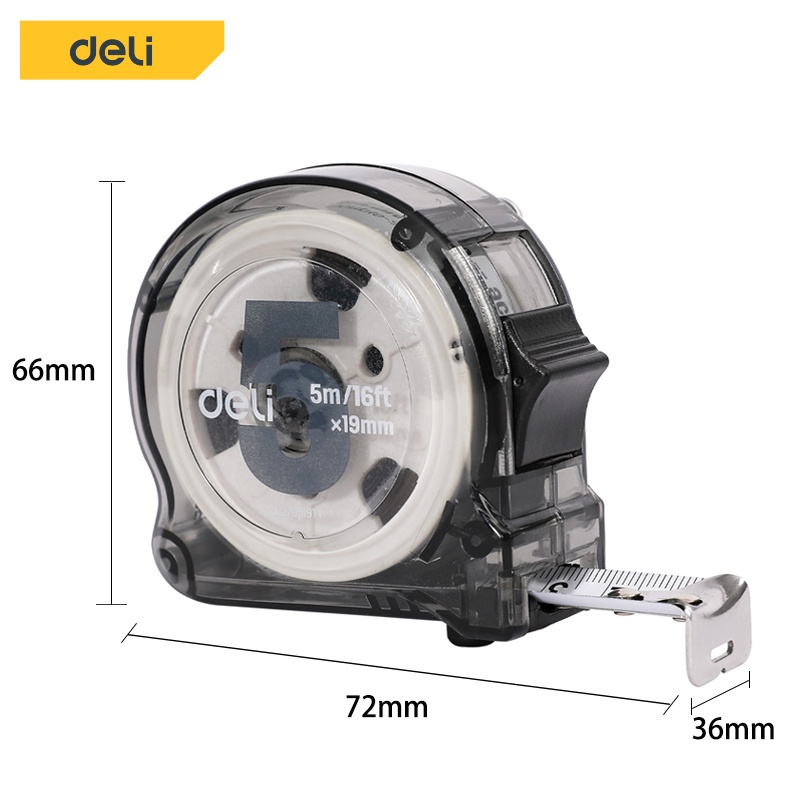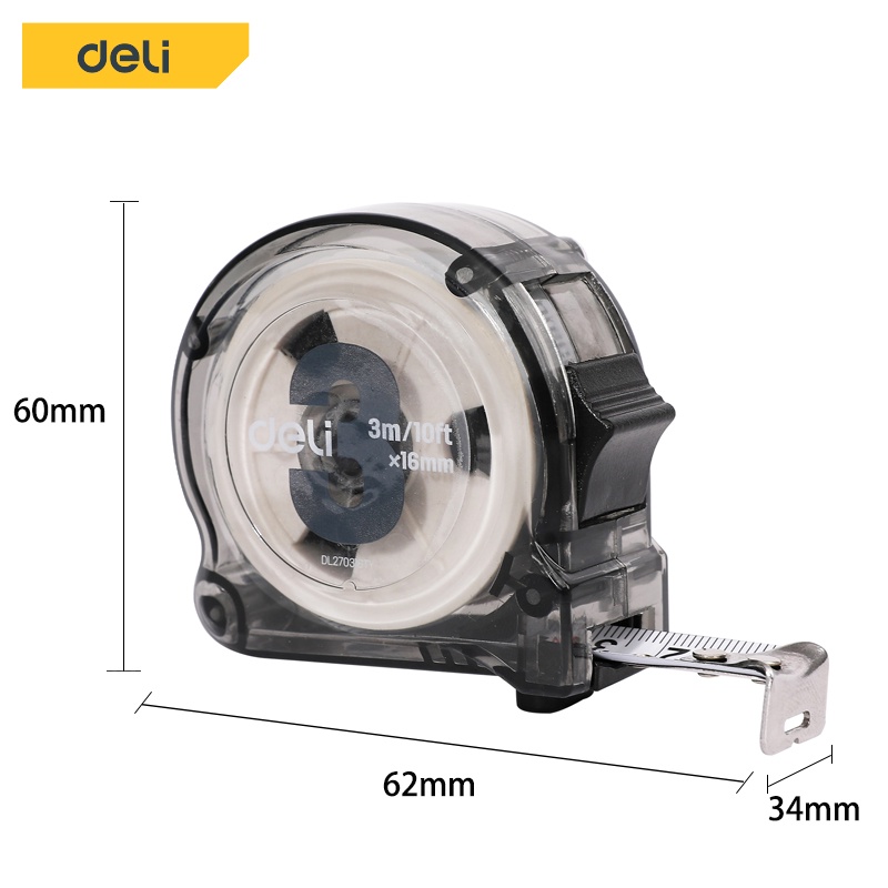 Deli ตลับเมตร ตลับเมตรใส 3 5เมตร สายวัดหุ้ม ยาง พกพาสะดวก มาพร้อมตัวล็อคสายวัด Measuring Tape