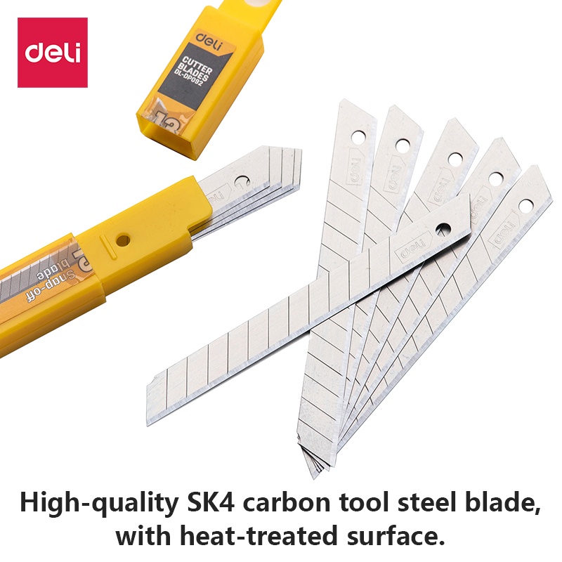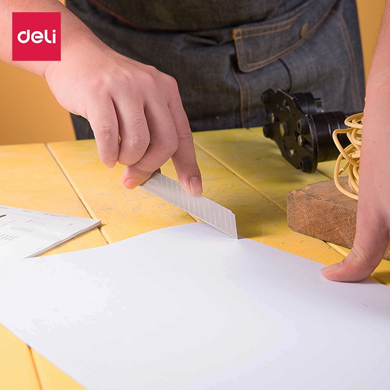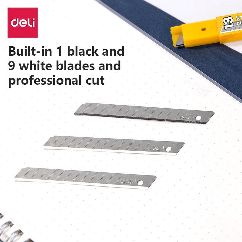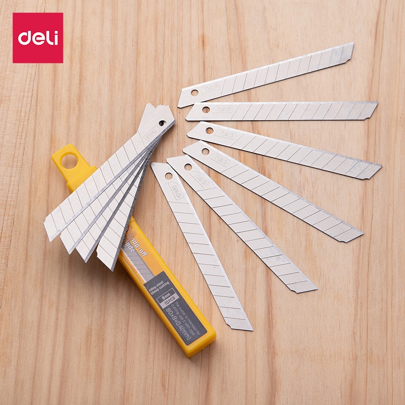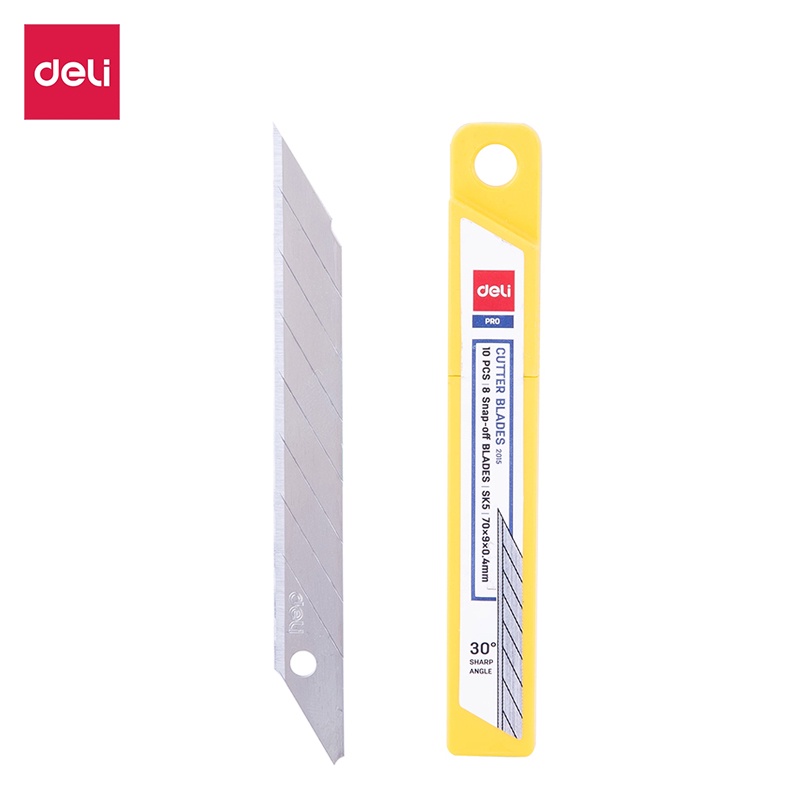 Deli ใบมีดคัตเตอร์ ใบมีดคัตเตอร์เล็ก ใบมีด 9มม. / 18 มม. 45 องศา 10ใบ/หลอด ใบมีดเหล็กอย่างดี คัตเตอร์ Cutter Blade