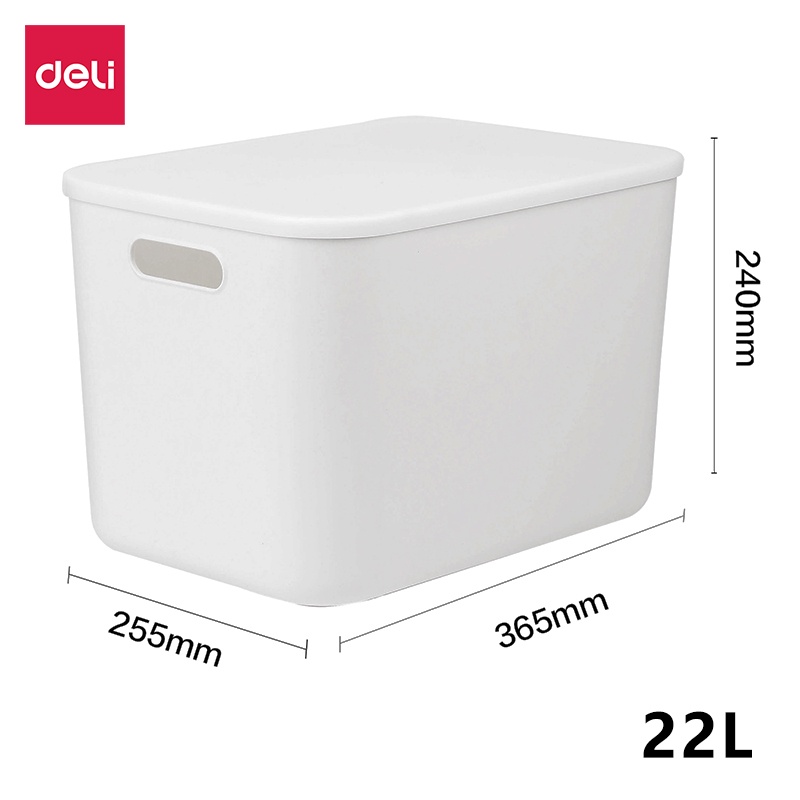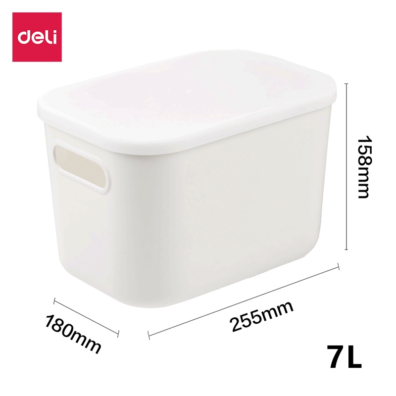Deli กล่องพลาสติกพร้อมฝาปิด กล่องเก็บของ ที่ใส่ของ มินิมอล มีที่จับ ประหยัดพื้นที่ Storage Box
