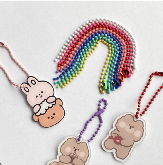 ★พร้อมส่ง โซ่ไข่ปลาใส่พวงกุญแจ ขนาด 2.4 x 12 ซม. โซ่ลูกปัดทรงกลม เส้นละ 1 บาท หลากสี DIY มี 11 สี เลือกสีได้