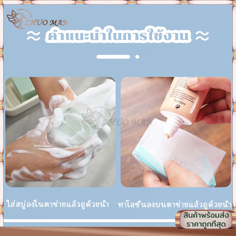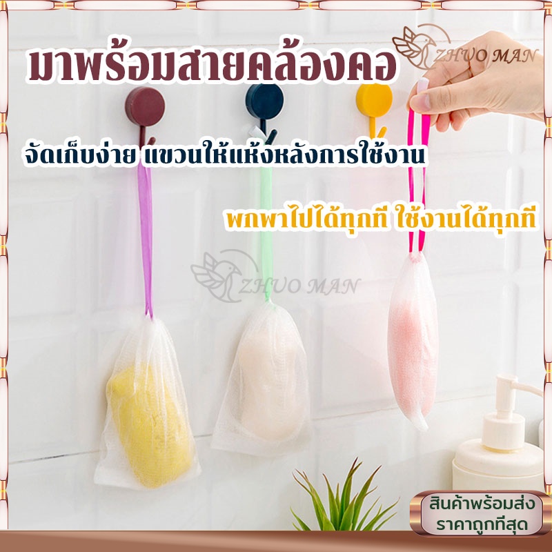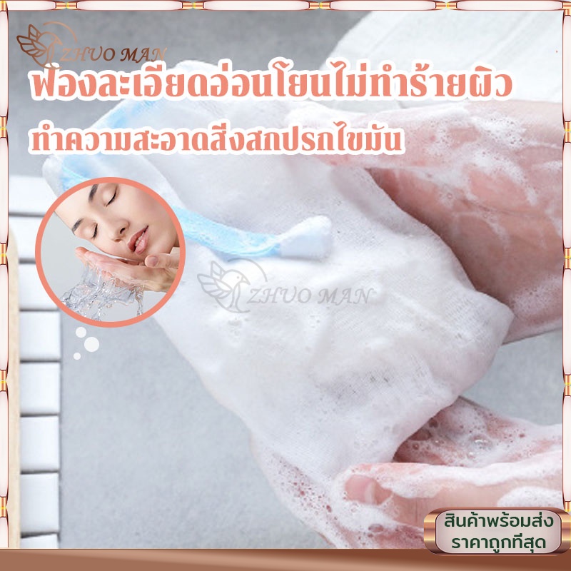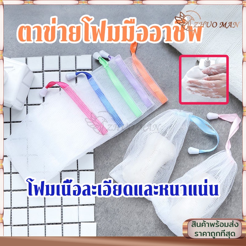 ตาข่ายโฟมมืออาชีพเนื้อละเอียดละหนาแน่นอ่อนโยนไม่ทำร้ายผิวความสะอาดส่งสกปรกไขมัน พร้อมสายคล้องเก็บ แบบสุ่มสี