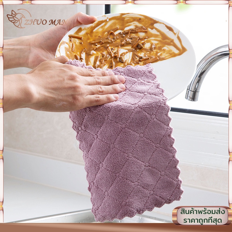 ผ้าเช็ดจาน ผ้าเช็ดโต๊ะ 16*27cm ดูดซับน้ำได้ดีเยี่ยม วัสดุกำมะหยี่ปะการัง ใช้ได้ทั้งสองด้ านผ้าเช็ดมือคละสี