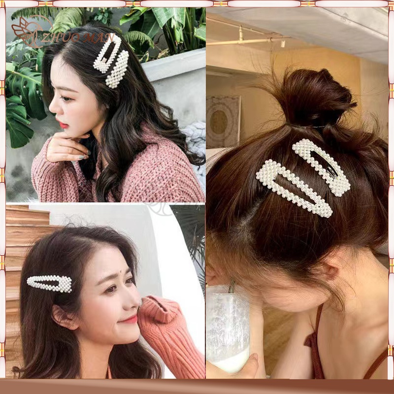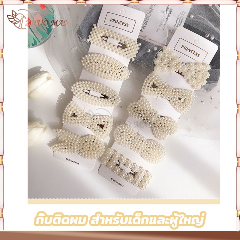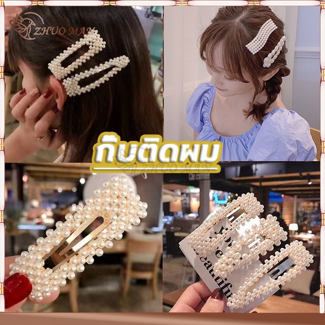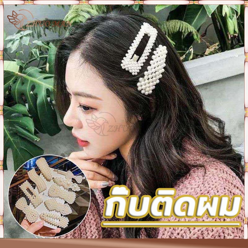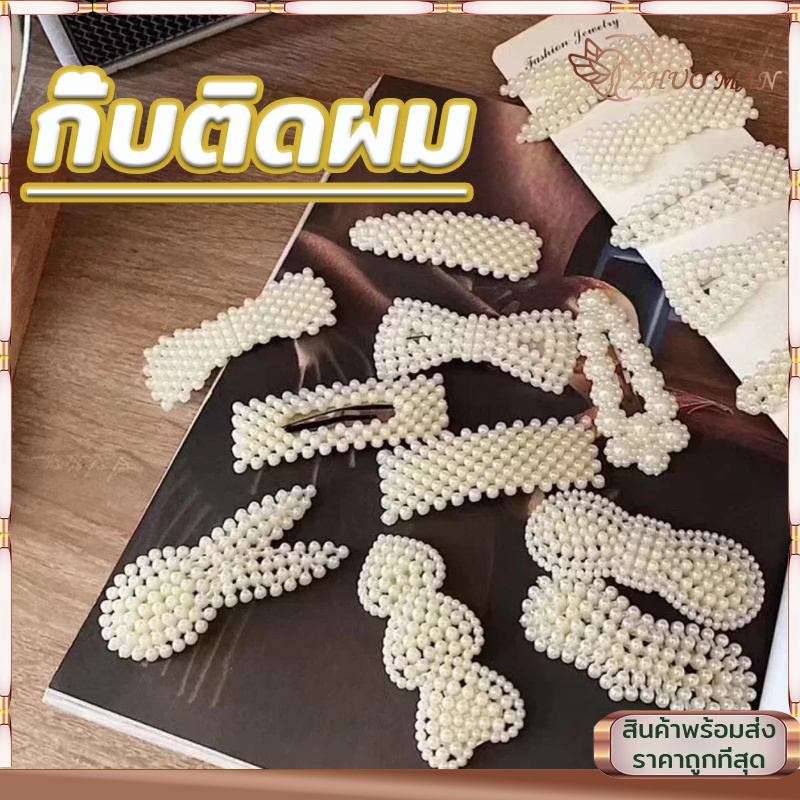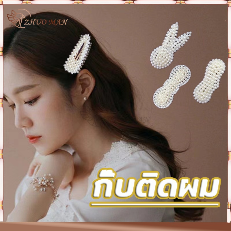 กิ๊บติดผม กิ๊ปติดผม กิ๊บติดผมประดับมุก กิ๊บติดผมเกาหลี แฟชั่นสำหรับผู้หญิง สีขาว ทรงเรขาคณิต หลากหลายรุ่นให้เลือก