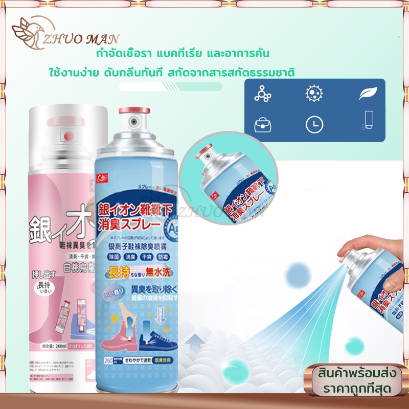 สเปรย์ดับกลิ่นเท้าและรองเท้า สเปรย์ดับกลิ่นเท้า สเปรย์ดับกลิ่นรองเท้า 260ML ระงับกลิ่นเหม็นได้ยาวนา คันเท้า
