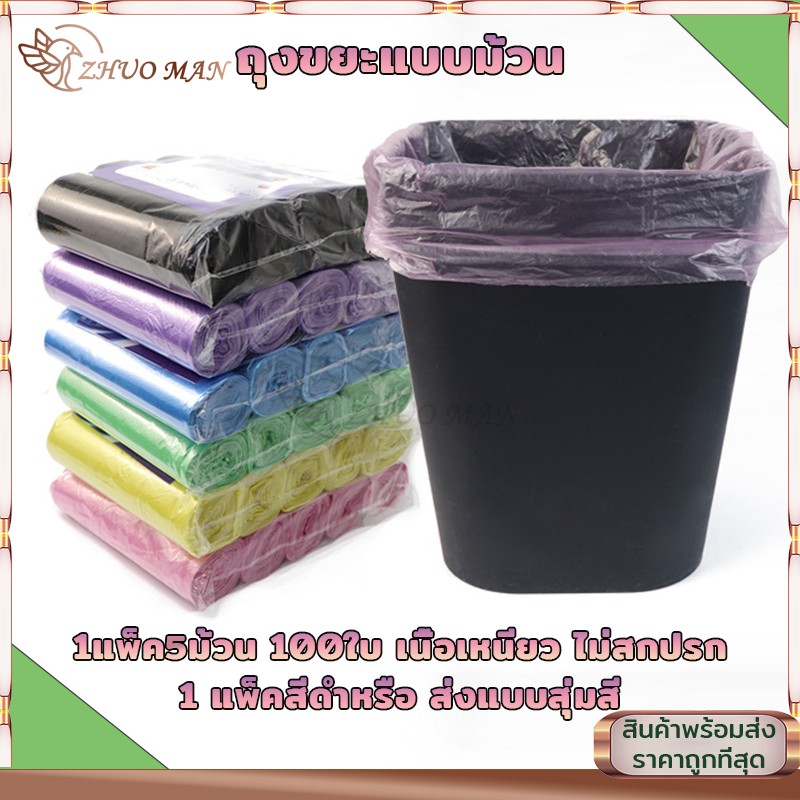 ถุงขยะ พกพา ถุงขยะม้วนแพค ดำเกรดA บางเหนียว 100 ใบขนาด 45×50 1แพ็ค5ม้วน ถุงขยะอเนกประสงค์ ถุงขยะแบบ ม้วน