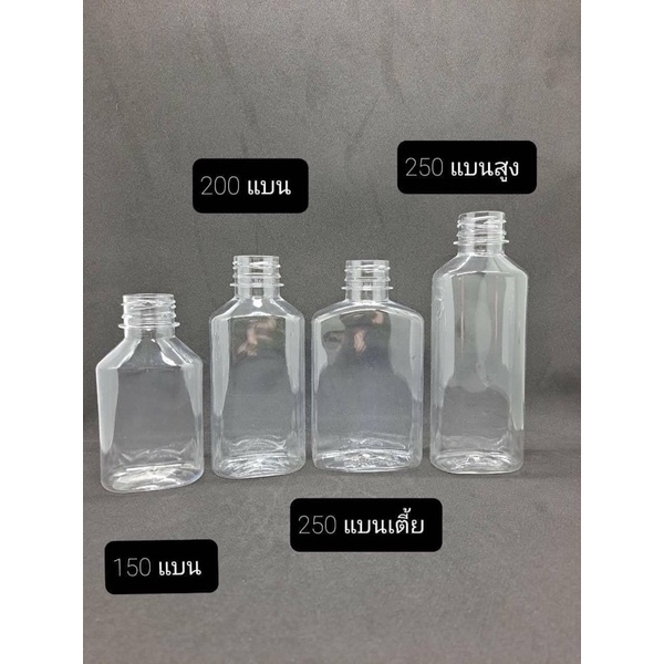 (ถูกที่สุด!) ขวดพลาสติก PET ทรงแบน 200cc ปาก30 (1 แพ็ค มี 150 ใบ พร้อมฝา)