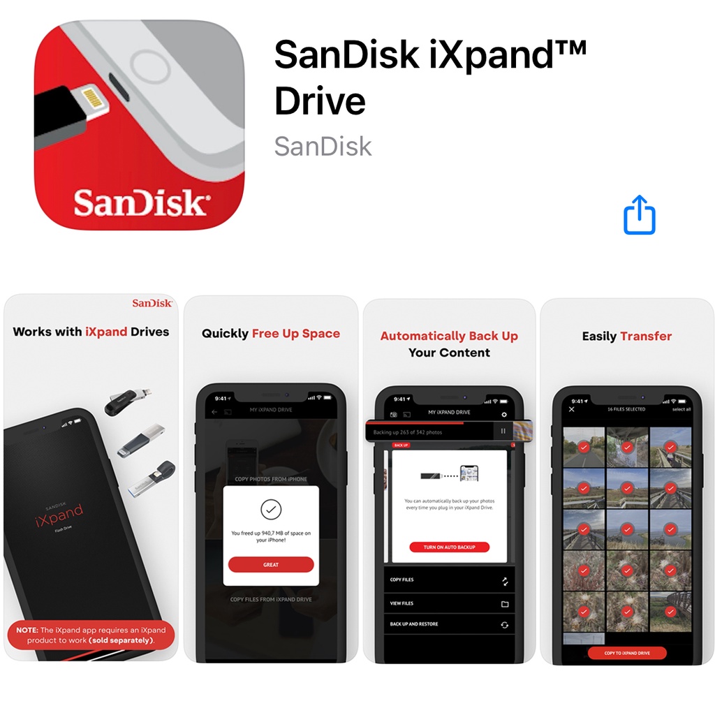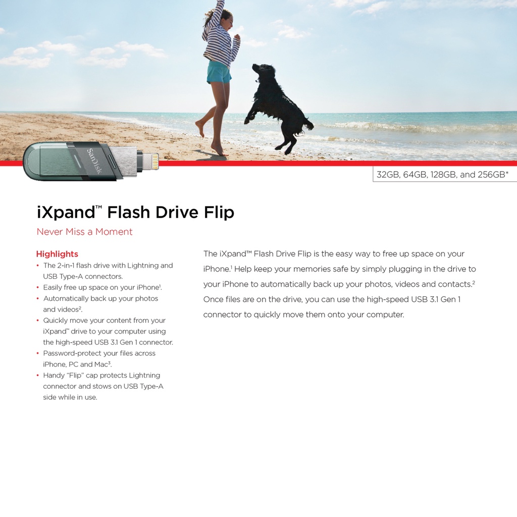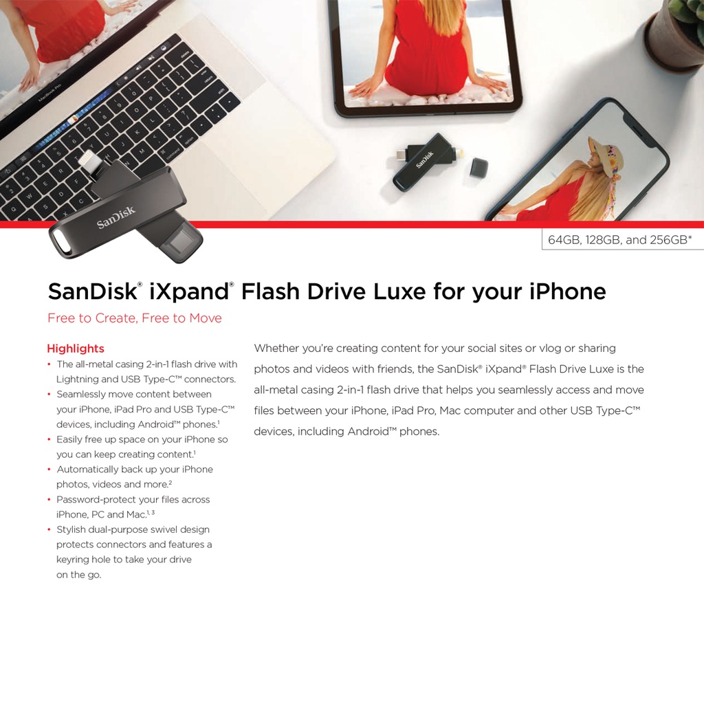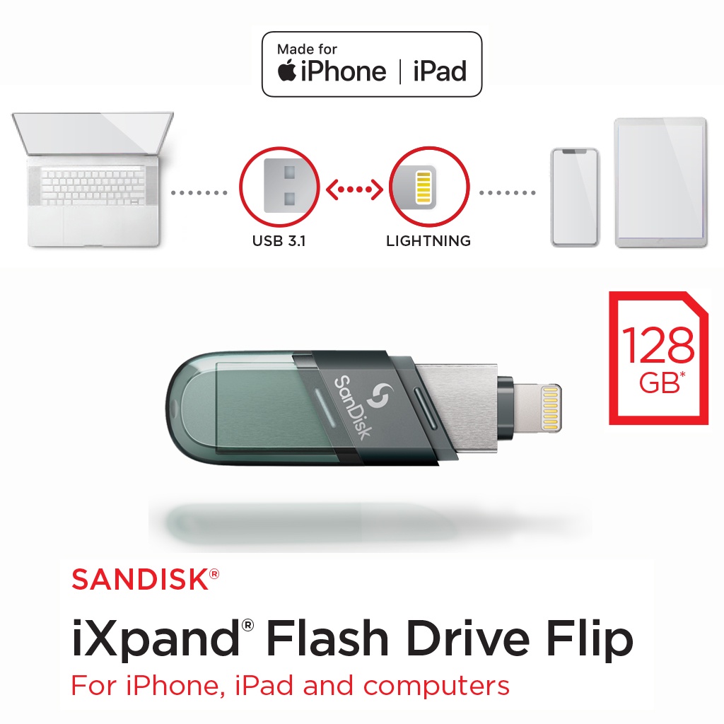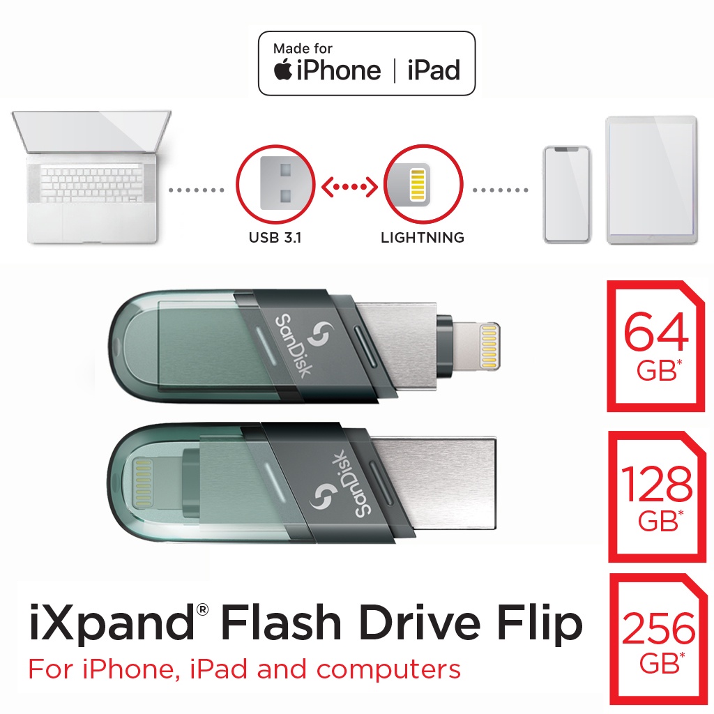 SanDisk iXpand Flash drive 64GB 128G 256GB แฟลชไดร์ฟ for iPhone iPad ไอโฟน ไอแ พด สำรองข้อมูล Backup