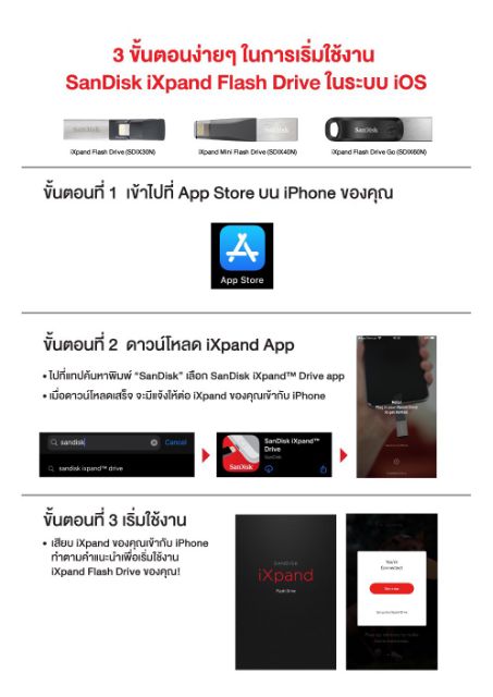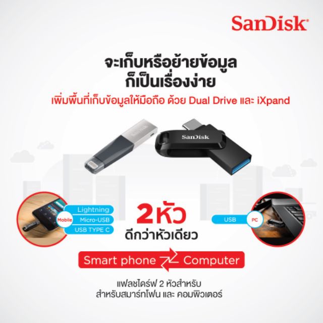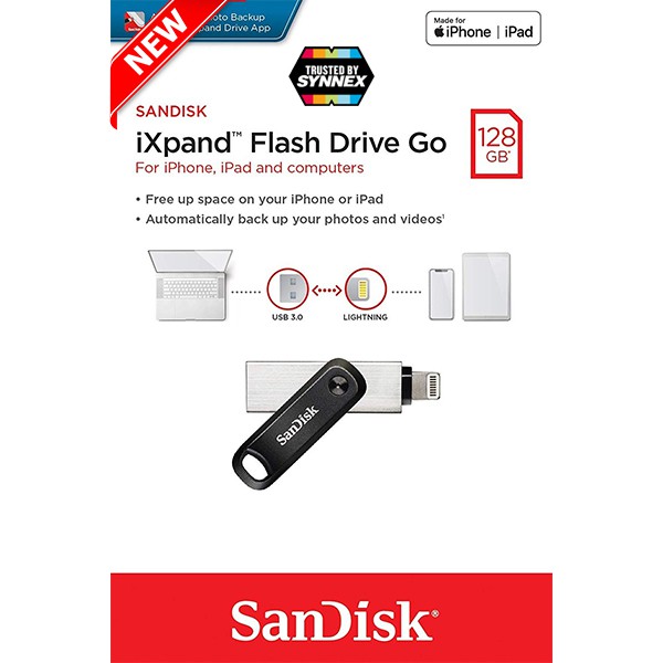 SanDisk iXpand Flash Drive Go 128GB for iPhone and iPad OTG(SDIX60N-128G-GN6NE) แฟลตไดฟ์ โอนย้ายข้อมูล โทรศัพท์ สำหรับ ไอโฟน ไอแพด