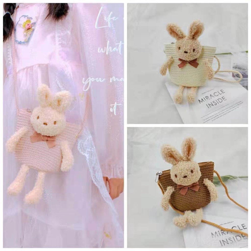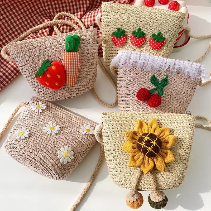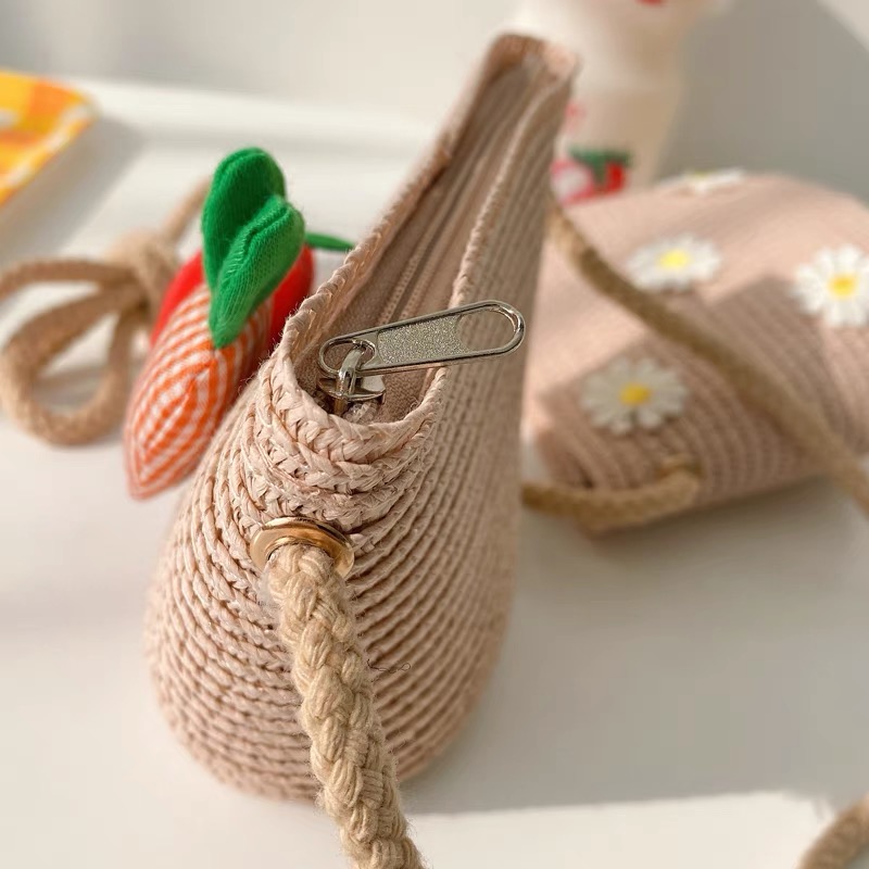 🔥ลด 50% ใส่โค้ด INC8LZ3🔥ฟางทอกระเป๋าฤดูใบไม้ผลิและฤดูร้อนสาวกระเป๋าสะพายเจ้าหญิงเวอร์ชั่นเกาหลีน่ารักป่าหญิงทา