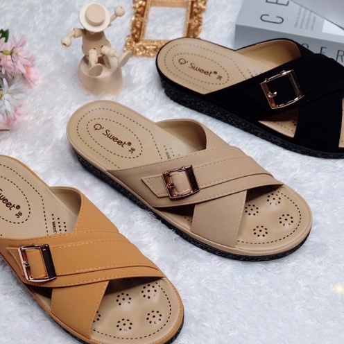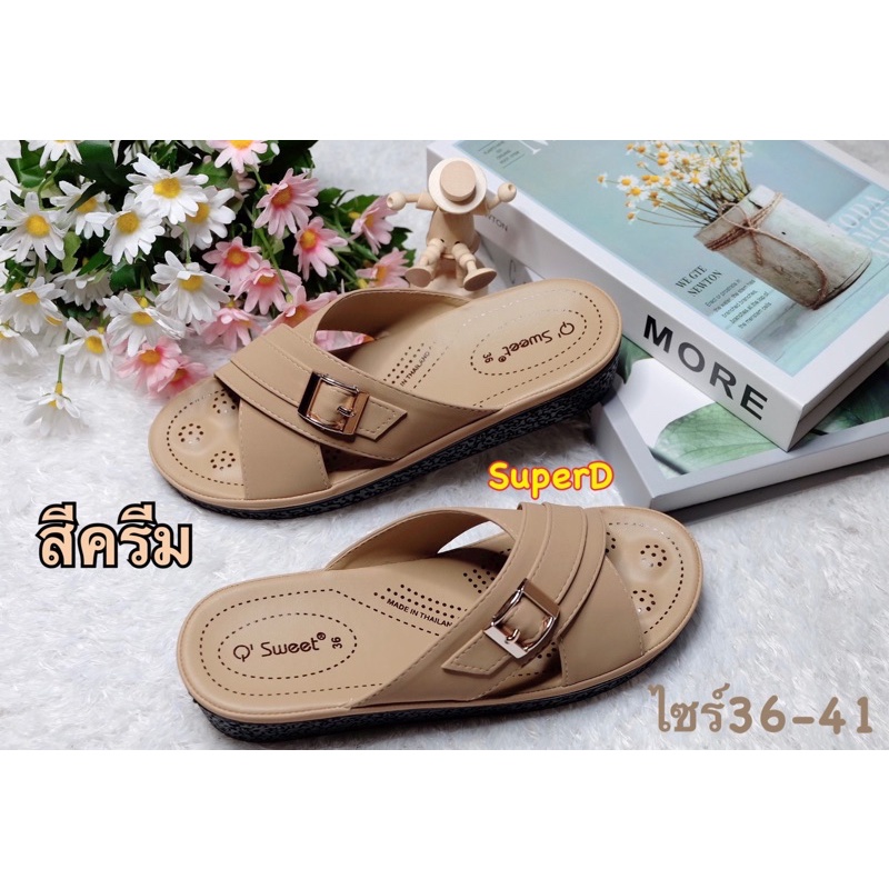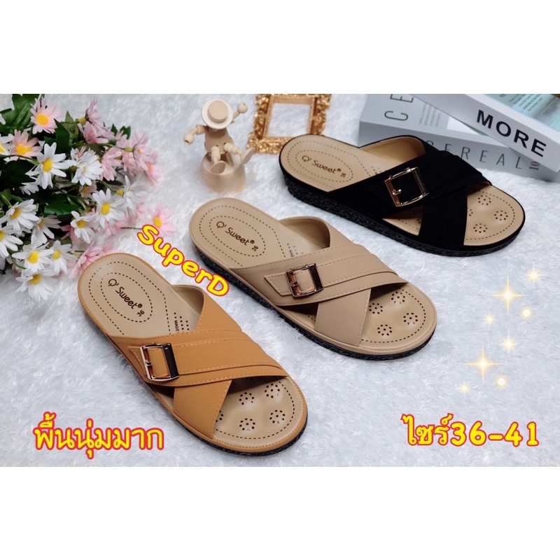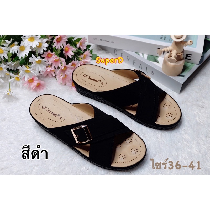 พร้อมส่งQ’Sweet รองเท้าแตะสวมใส่ง่าย รุ่นไขว้เข็มขัด พื้นนิ่ม ส้นสูง 1.5นิ้ว (SPD-9)