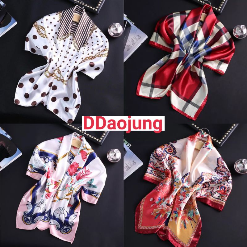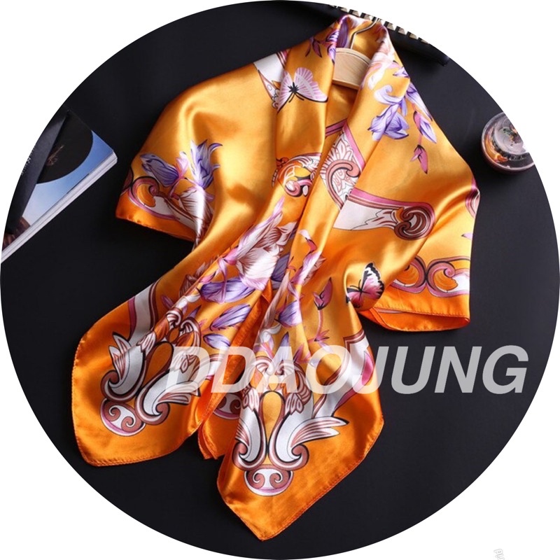 DDAOJUNG SATIN 🚚📮ส่งจากไทย🇨🇷 ผ้าคลุมไหล่ ผ้าพันคอ ฮิญาบ ผ้าผูกอก scarftop [ขนาด 90x90 ซม.]