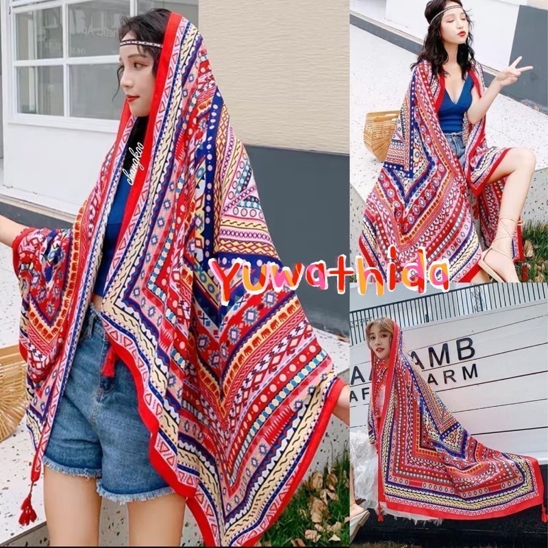 🎏🌟 ผ้าคลุมไหล่สไตล์ #โบฮีเมียน 🌟 ชิคๆ เก๋ๆ ผ้าหรูดูดี ขายดีขั้นสุด🌵🐳💕