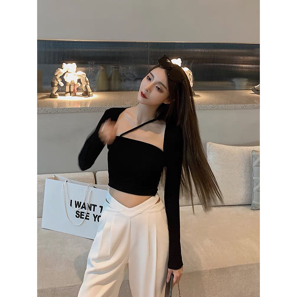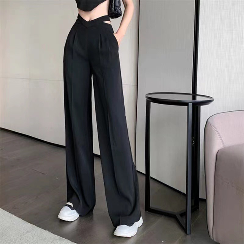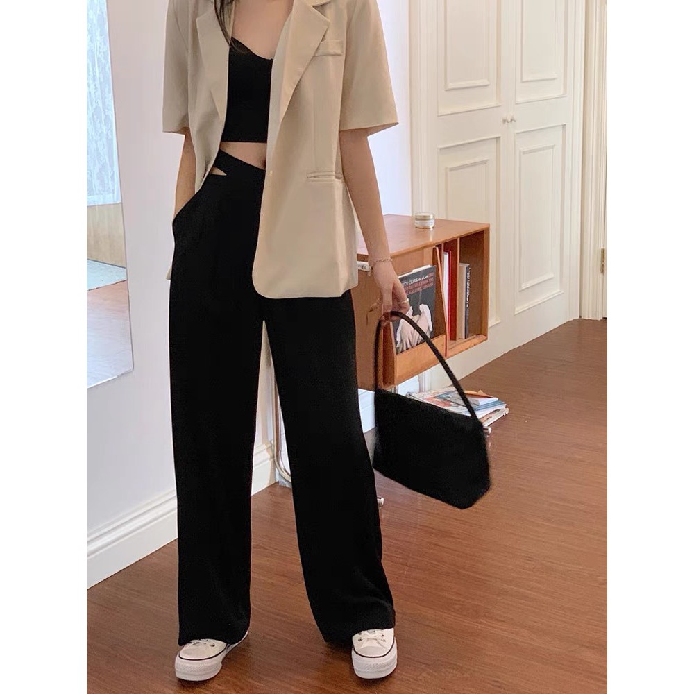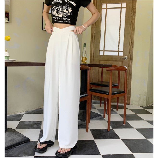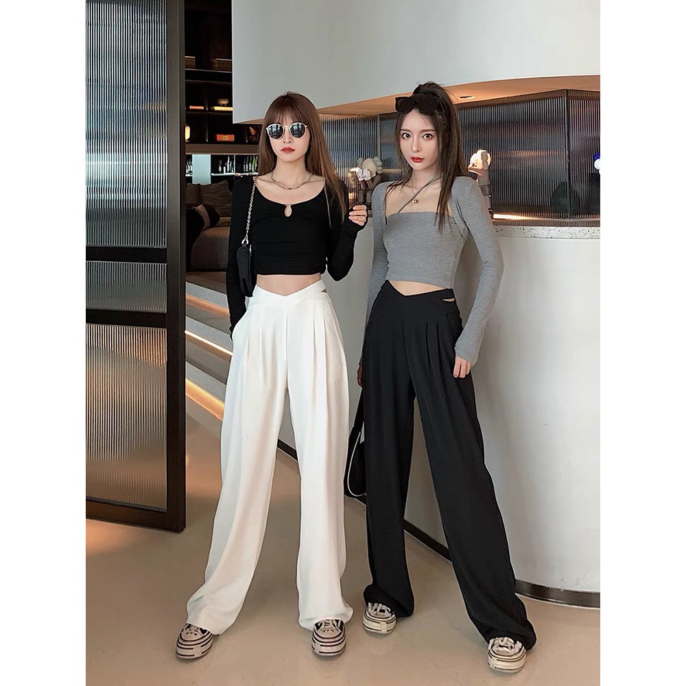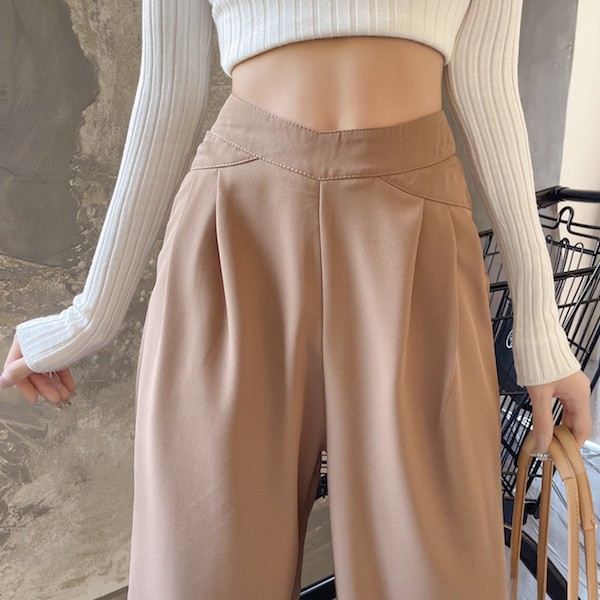 Cicishop(237)กางเกงขายางกระบอกเอวเว้า ทรงสวยเนื้อผ้าดีไม่ยับ ใส่แมทช์ครอปปังมาก
