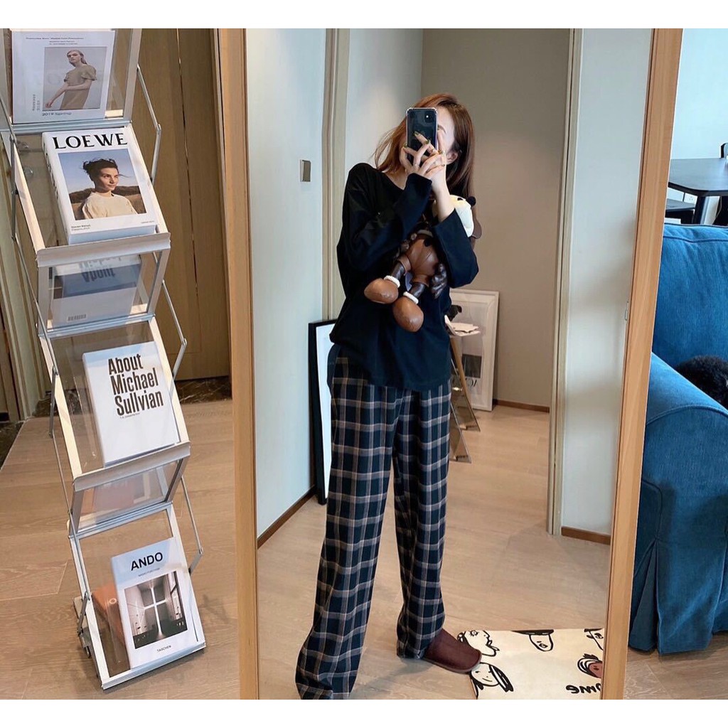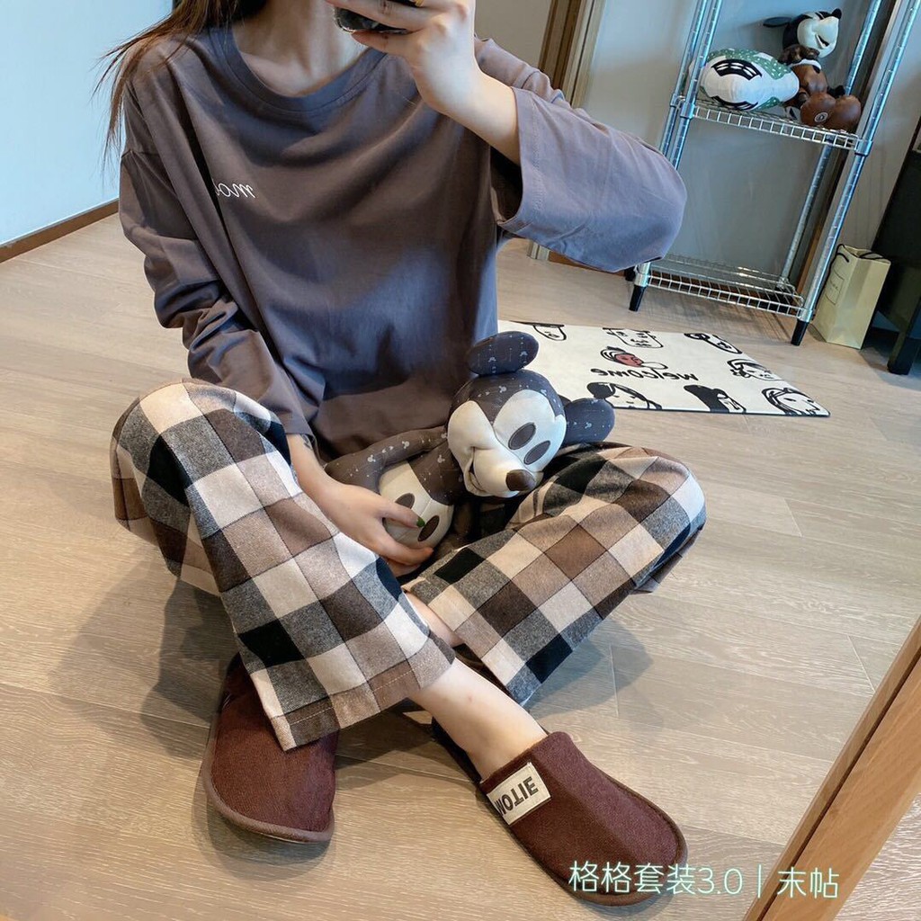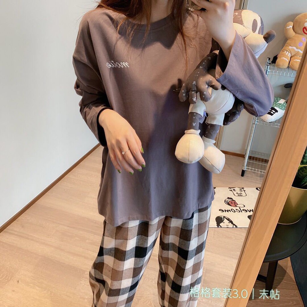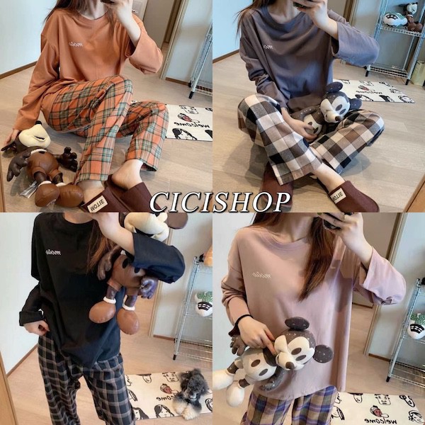 Cicishop(2106)เซตเสื้อแขนยาว+กางเกงขายาวสกรีนลาย ผ้านิ่มใส่สบาย ใส่ชิลๆหรือใส่นอนชิคมากๆ
