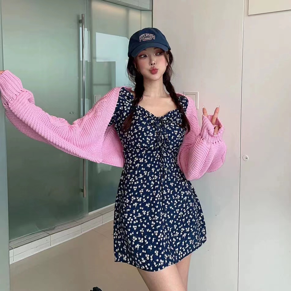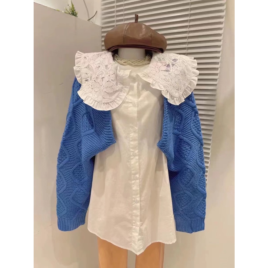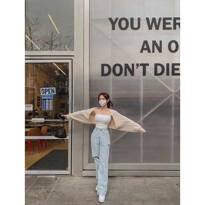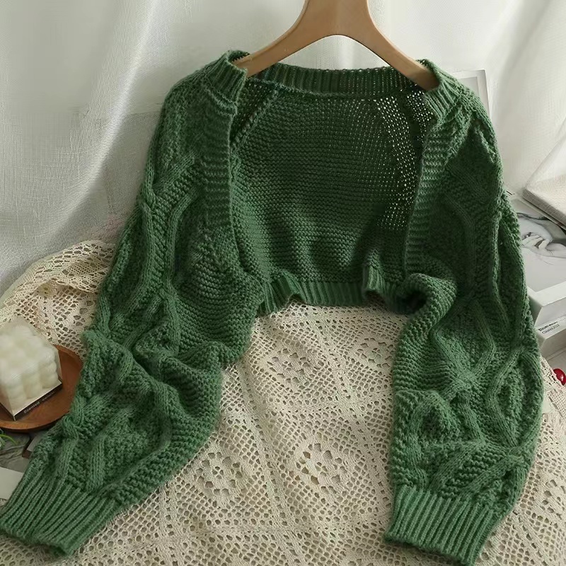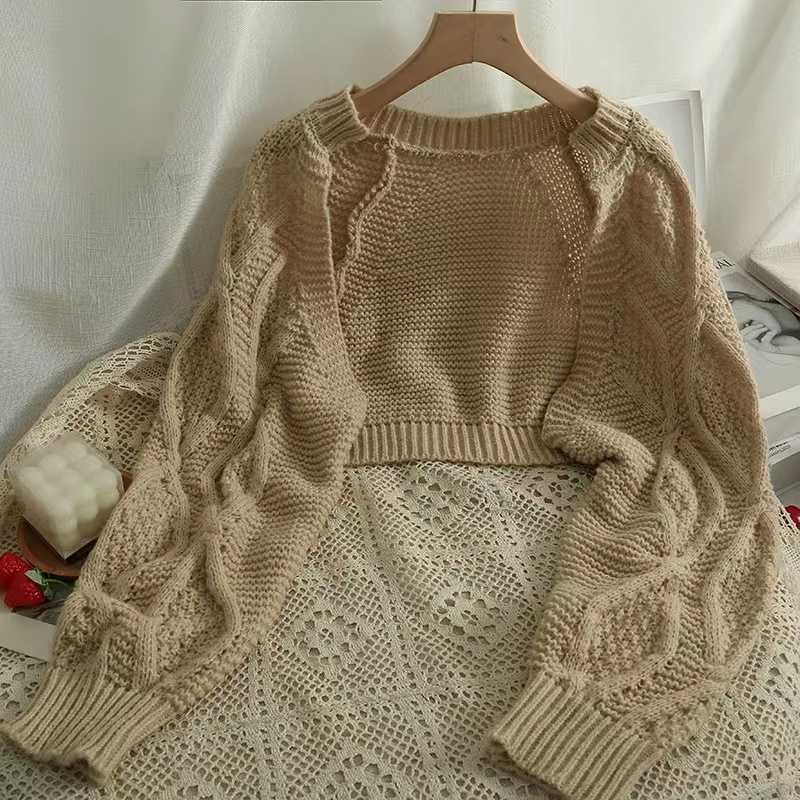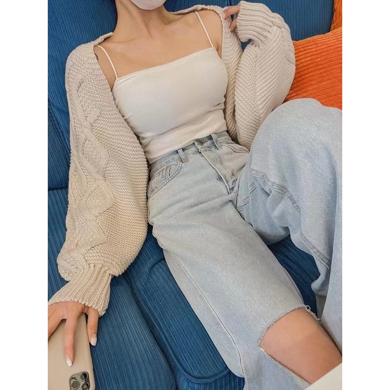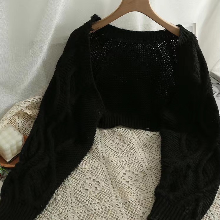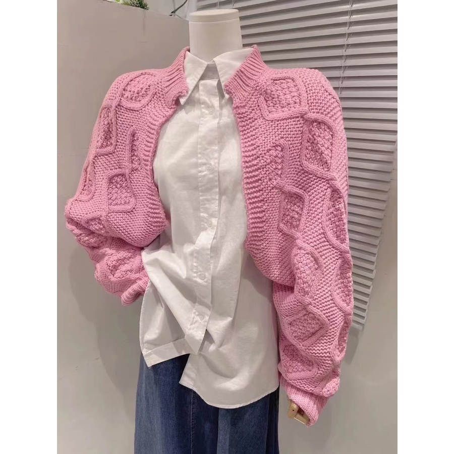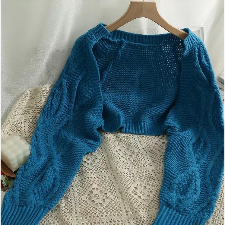 Cicishop(1035)เสื้อแขนขาวครอปไหมพรมknit น่ารักแบบเก๋ๆ เสื้อคลุมคาร์ดิแกนตัวสั้นสไตล์เกาหลี